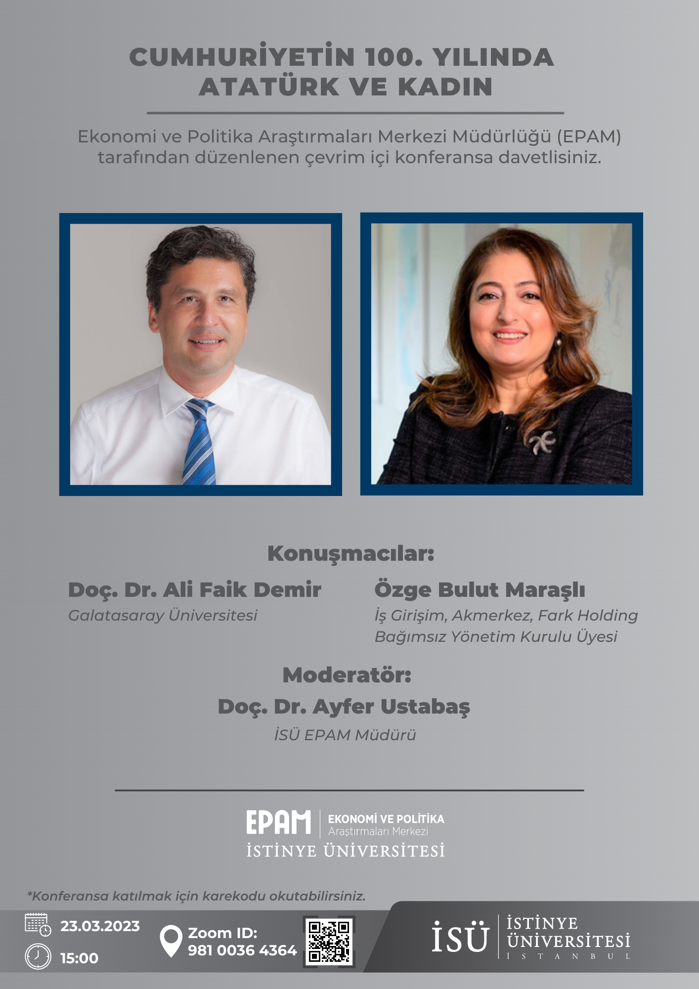 İstinye Üniversitesi Ekonomi ve Politika Araştırmaları Merkezi Müdürlüğü (EPAM) tarafından 23 Mart Perşembe günü saat 15:00'de çevrim içi olarak gerçekleştirilecek etkinliğe davetlisiniz.