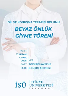 İstinye Üniversitesi, Dil Ve Konuşma Terapisi Bölümü tarafından 17 Nisan 2026 tarihinde gerçekleşecek olan “Beyaz Önlük Giyme Töreni” isimli etkinliğe davetlisiniz.