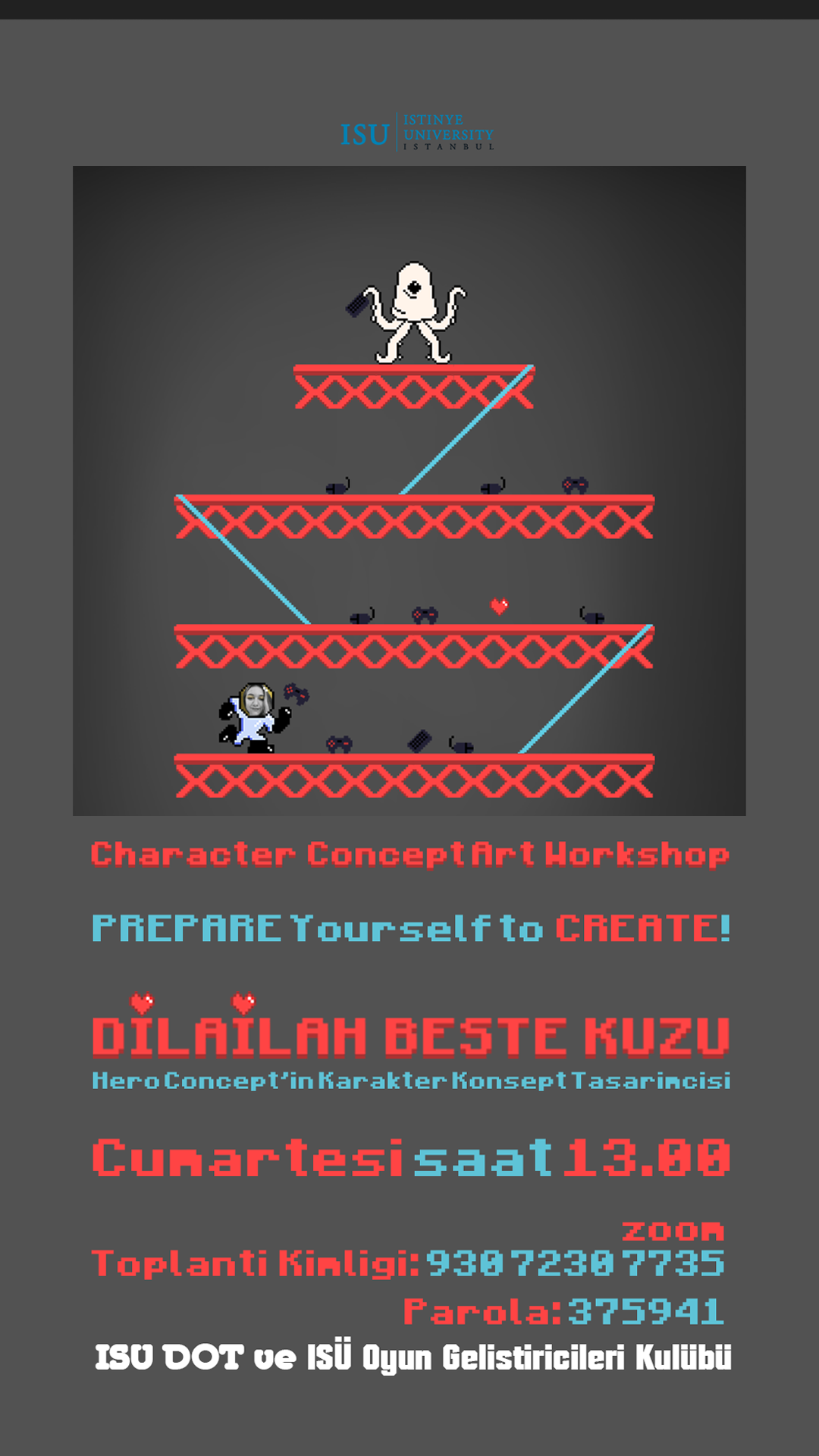 İstinye Üniversitesi Dijital Oyun Tasarımı bölümü ve Oyun Geliştiricileri Kulübü tarafından 30 Mart 2024 Cumartesi günü saat 13:00'da çevrim içi olarak gerçekleştirilecek etkinliğe davetlisiniz.