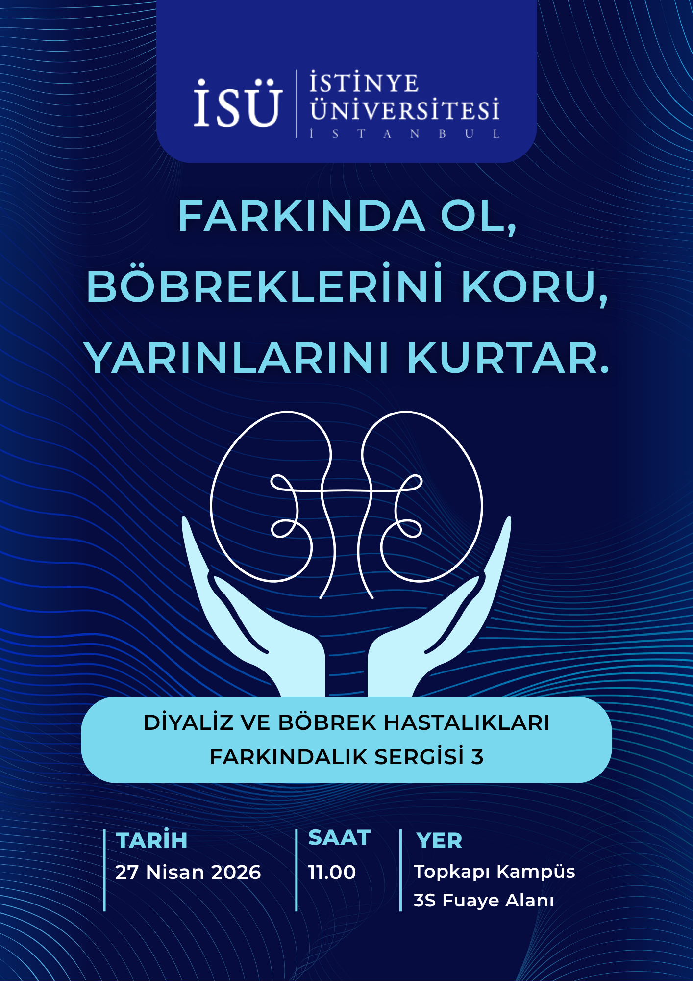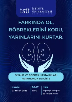 İstinye Üniversitesi, Diyaliz Programı tarafından 27 Nisan 2026 tarihinde gerçekleşecek olan “Diyaliz ve Böbrek Hastalıkları Farkındalık Sergisi 3” isimli etkinliğe davetlisiniz.