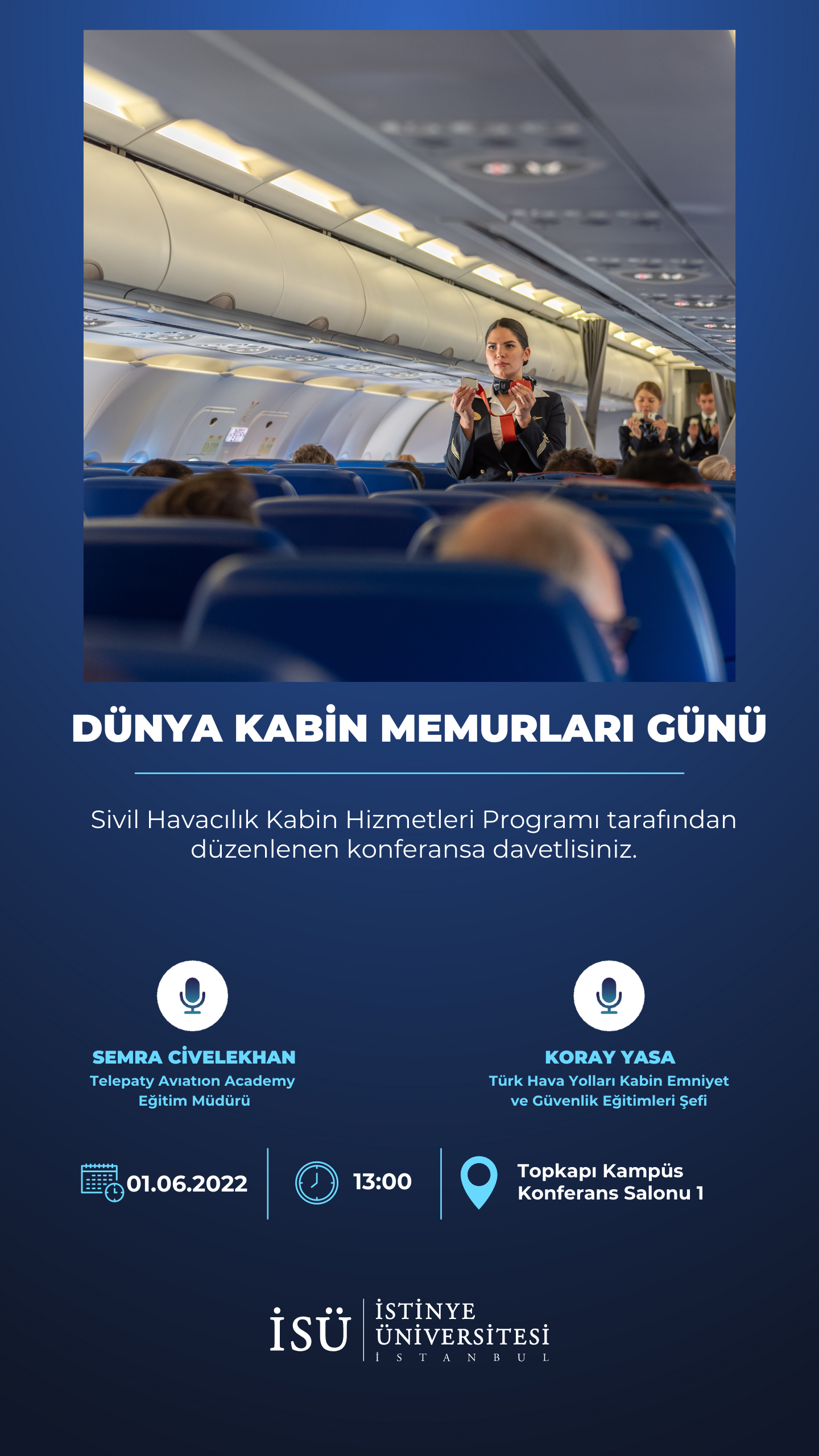 İstinye Üniversitesi Meslek Yüksekokulu Sivil Havacılık Kabin Hizmetleri Programı tarafından düzenlenen 31 Mayıs 2024 Cuma günü saat 13:00'da gerçekleştirilecek olan etkinliğe davetlisiniz.
