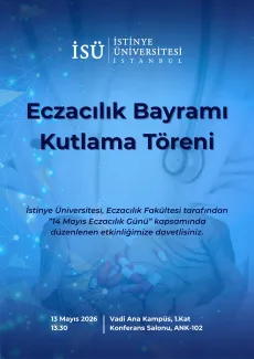 İstinye Üniversitesi, Eczacılık Fakültesi tarafından 13 Mayıs 2026, saat 13.30'da gerçekleşecek olan “Eczacılık Bayramı Kutlama Töreni” isimli etkinliğe davetlisiniz.