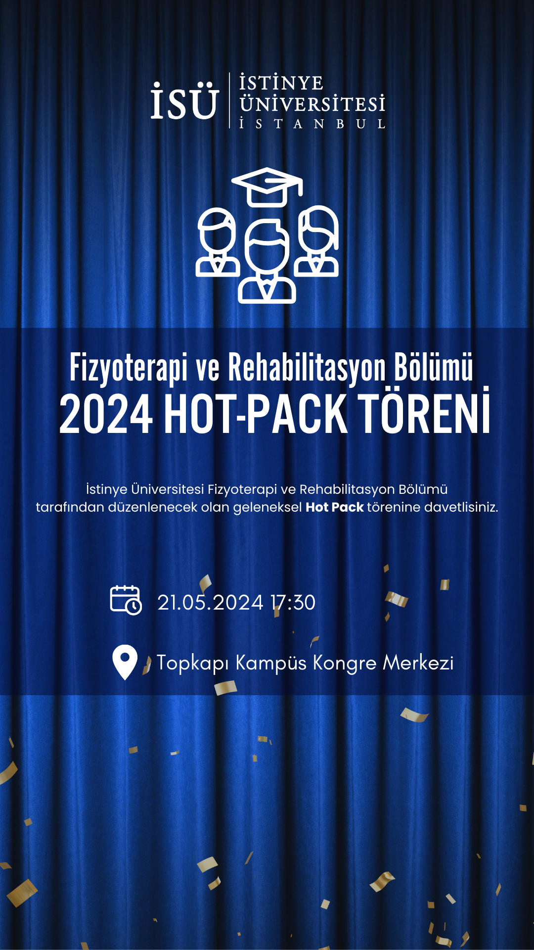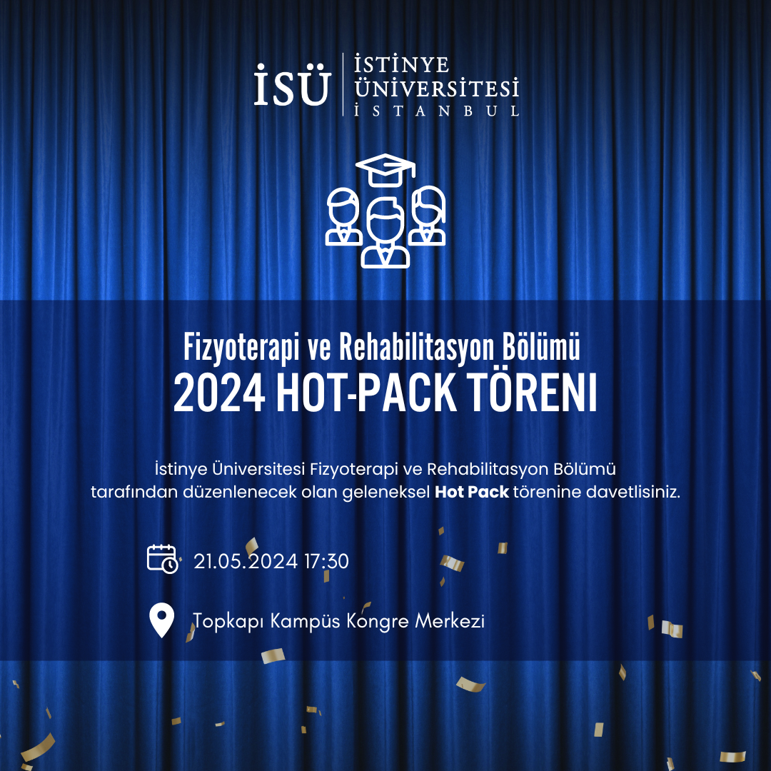 İstinye Üniversitesi Sağlık Bilimleri Fakültesi, Fizyoterapi ve Rehabilitasyon Bölümü tarafından 21 Mayıs 2024 Salı günü saat 17:30'da gerçekleştirilecek törene davetlisiniz.