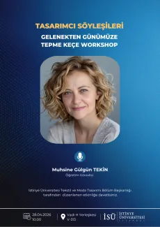 İstinye Üniversitesi, Tekstil ve Moda Tasarımı Bölümü tarafından 28 Nisan 2026, saat 10.00'da gerçekleşecek olan “Gelenekten Günümüze Tepme Keçe Workshop”una davetlisiniz.