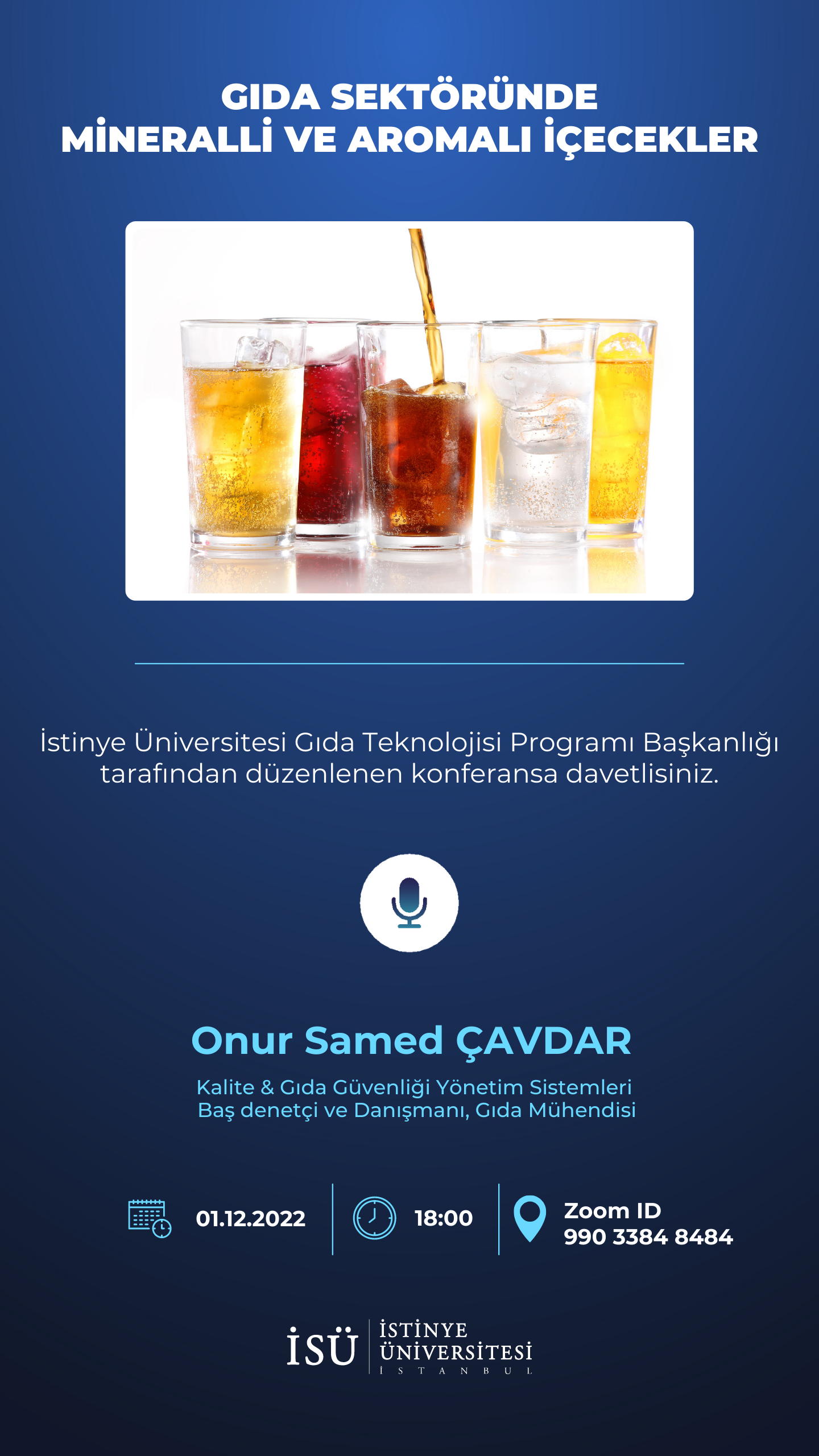 İstinye Üniversitesi Gıda Teknolojisi Programı Başkanlığı tarafından 1 Aralık Perşembe günü saat 18.00'de çevrim içi olarak gerçekleştirilecek etkinliğe davetlisiniz.