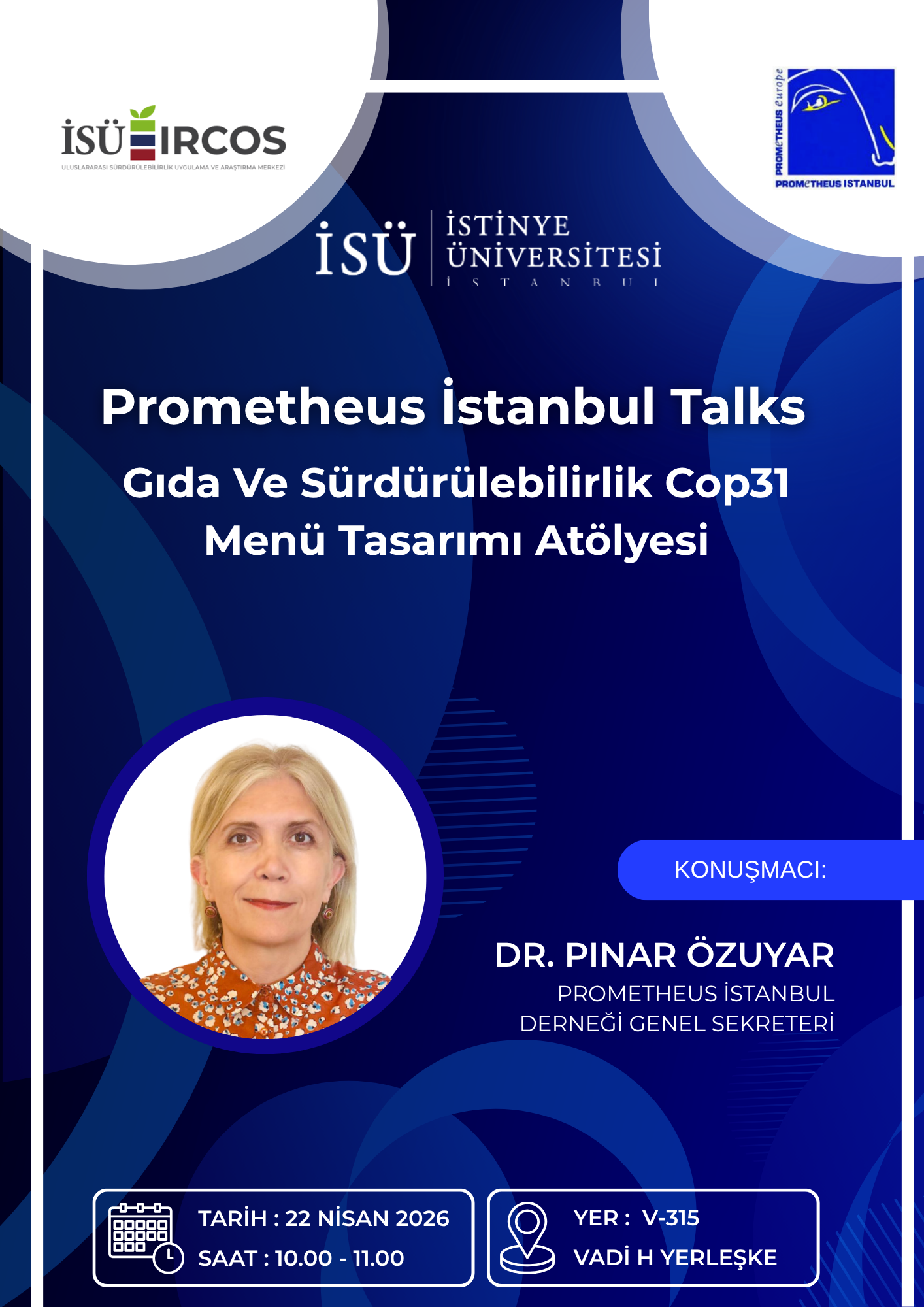 İstinye Üniversitesi, Uluslararası Sürdürülebilirlik Uygulama ve Araştırma Merkezi tarafından 22 Nisan 2026 tarihinde gerçekleşecek olan “Gıda ve Sürdürülebilirlik: COP31 Menü Tasarımı Atölyesi ” isimli etkinliğe davetlisiniz.
