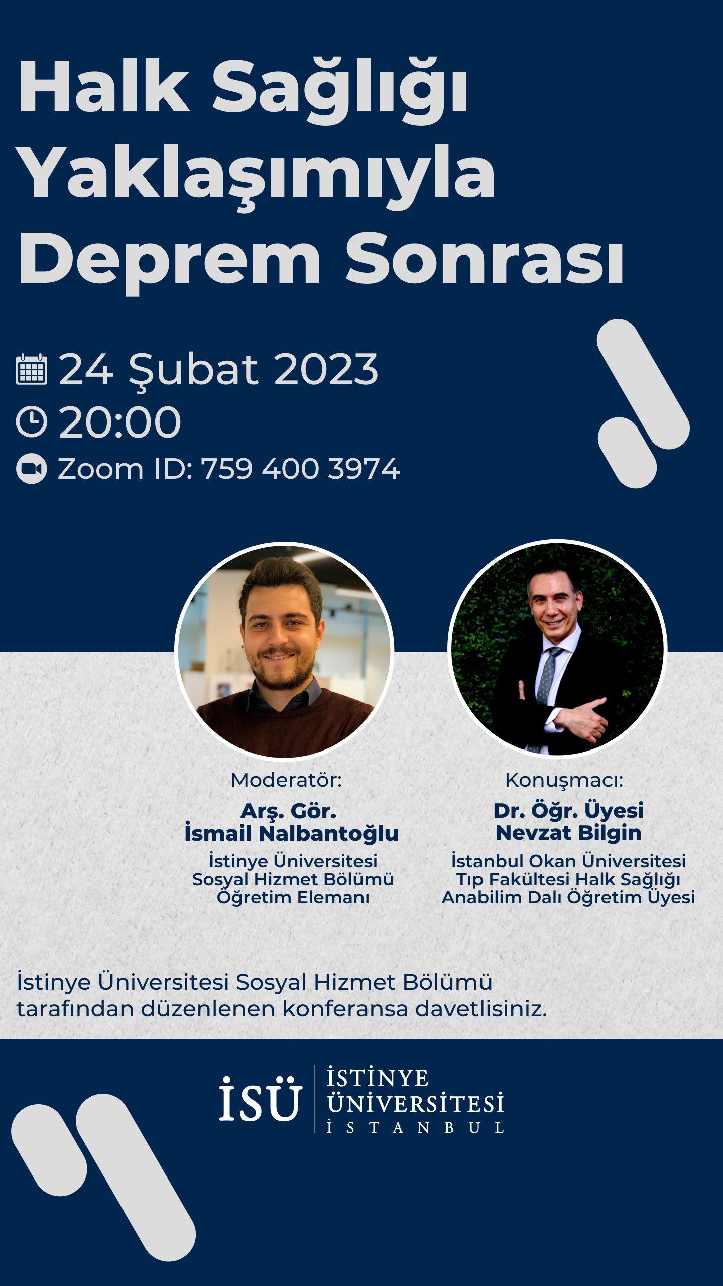 İstinye Üniversitesi Sosyal Hizmet Bölümü tarafından 24 Şubat Cuma günü saat 20.00'de çevrim içi olarak gerçekleştirilecek etkinliğe davetlisiniz.