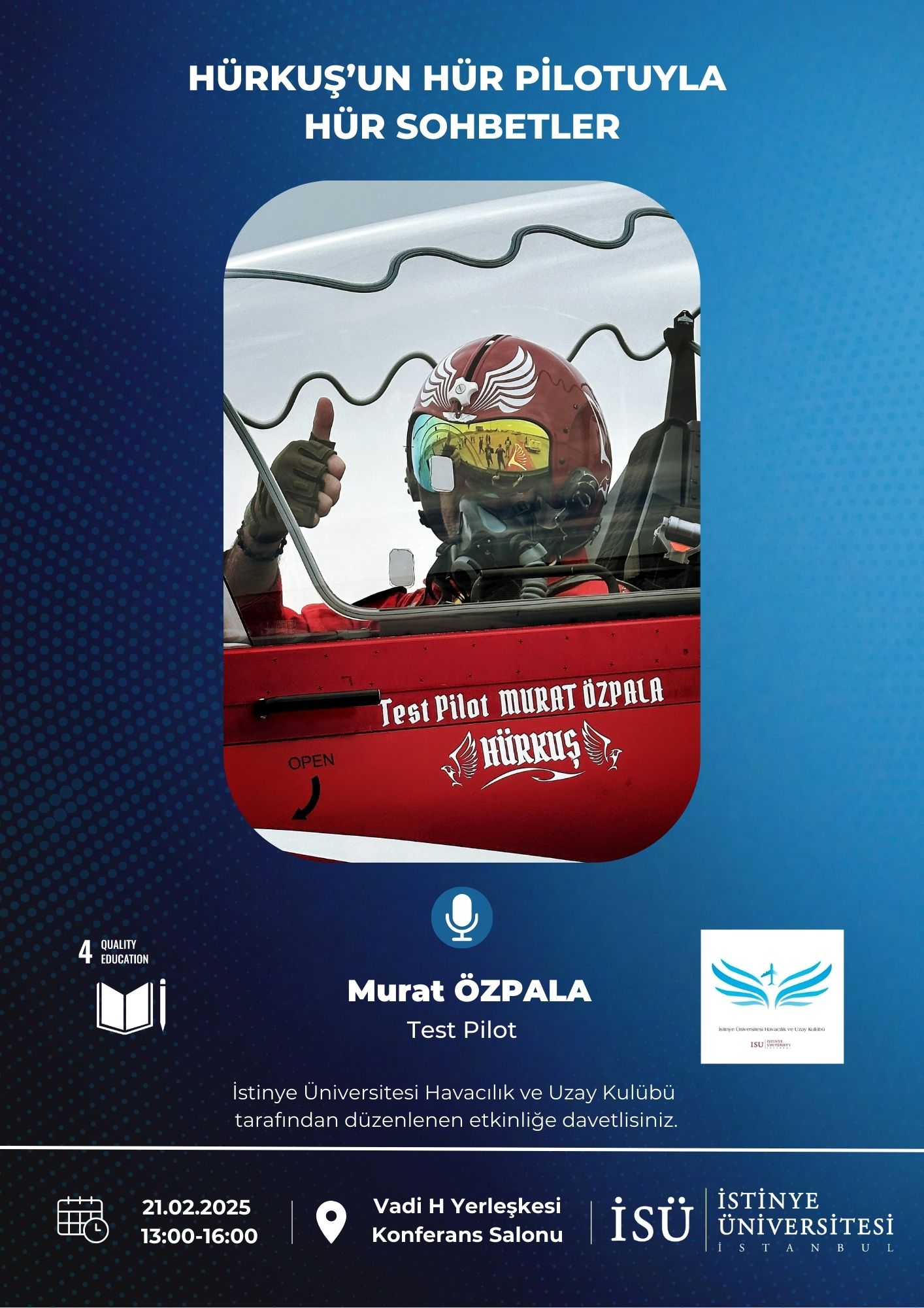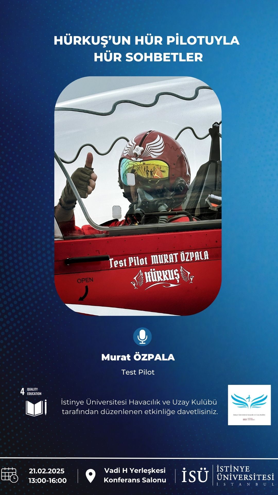 İstinye Üniversitesi Havacılık ve Uzay Kulübü tarafından düzenlenen 'Hürkuş’un Hür Pilotuyla Hür Sohbetler' etkinliğine davetlisiniz.