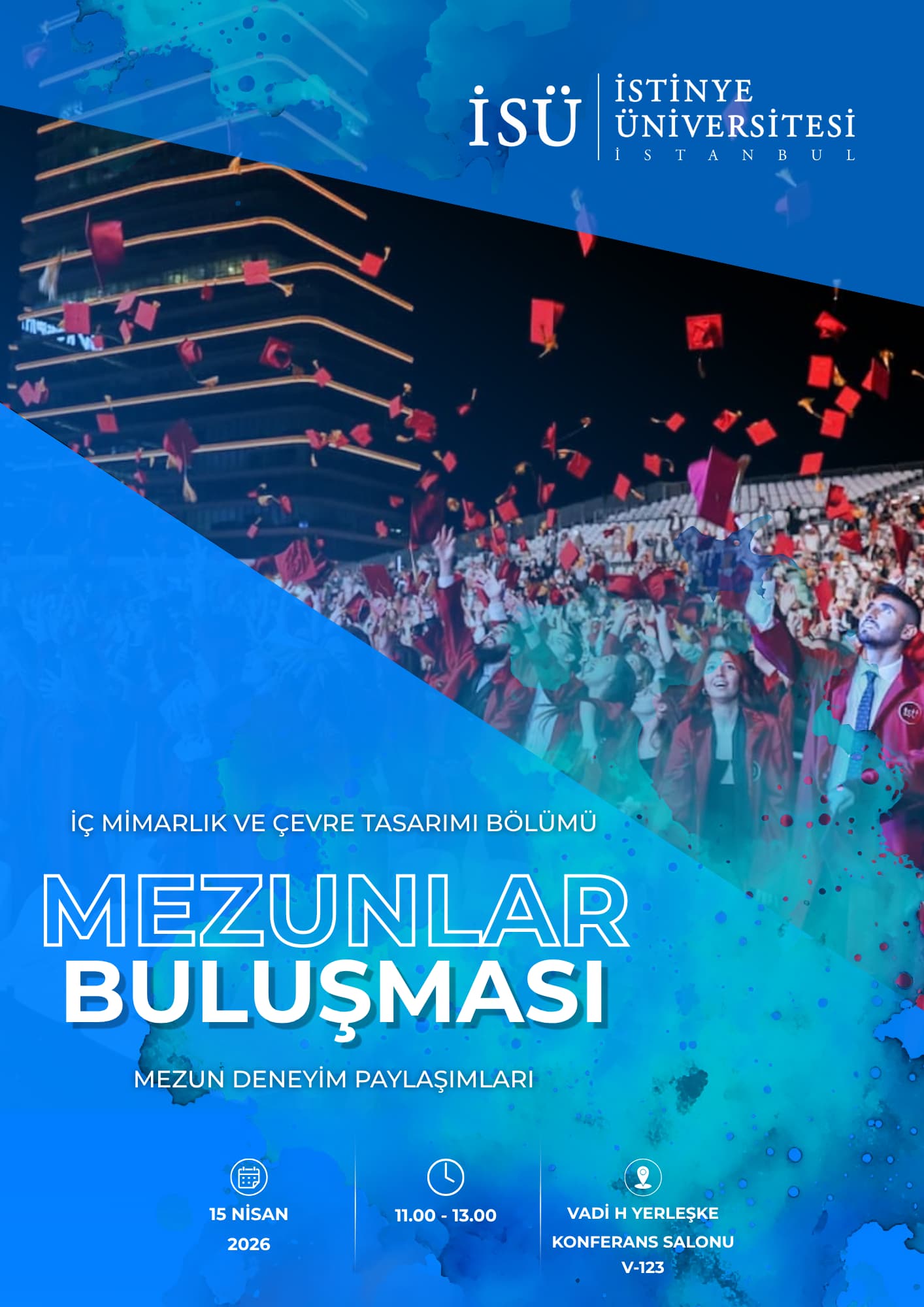 İstinye Üniversitesi, İç Mimarlık ve Çevre Tasarımı Bölümü tarafından 14 Nisan 2026, saat 10.00'da gerçekleşecek olan “İç Mimarlık ve Çevre Tasarımı Bölümü Mezunlar Buluşması” isimli etkinliğe davetlisiniz.