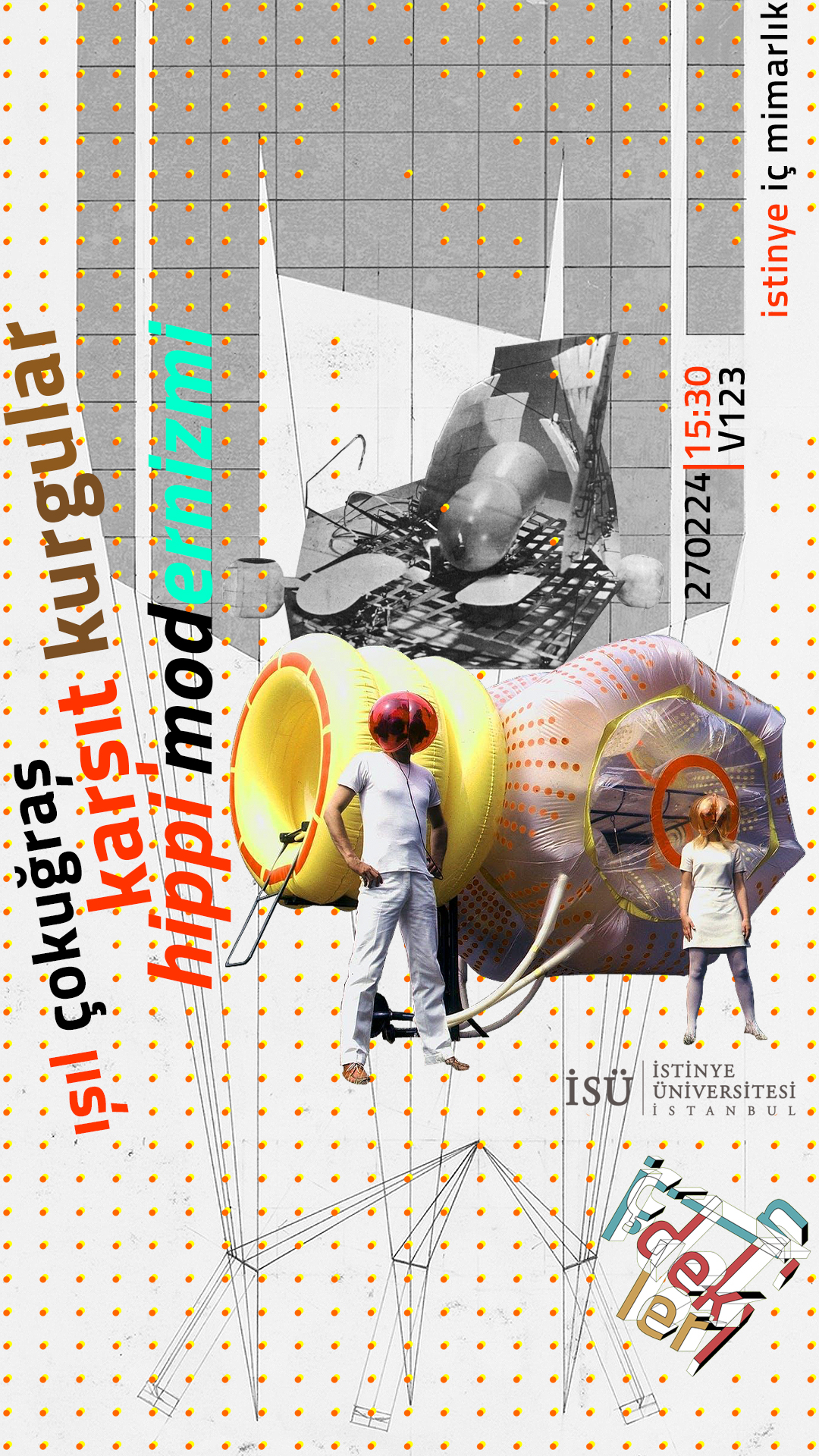 İstinye Üniversitesi İç Mimarlık ve Çevre Tasarımı Bölümü, Dr. Öğr. Üyesi Mustafa Mortaş tarafından gerçekleştirilen İçindekiler: Spekülatif Mekân Araştırmaları serisi, ikinci etkinliği için Doç. Dr. Işıl Çokuğraş’ı konuk ediyor. Doç. Dr. Işıl Çokuğraş “Karşıt Kurgular: Hippi Modernizmi” başlıklı sunum ve konuşması ile, var olan tüm fikirlerin ve durumların sınırları zorlayan 1960'lar üretimlerine kısa bir bakış atacak. Dönemin çeşitli gruplarının tasarımlarını ana akım kültürün karşısında nasıl konumlandırdıklarını irdeleyecek.