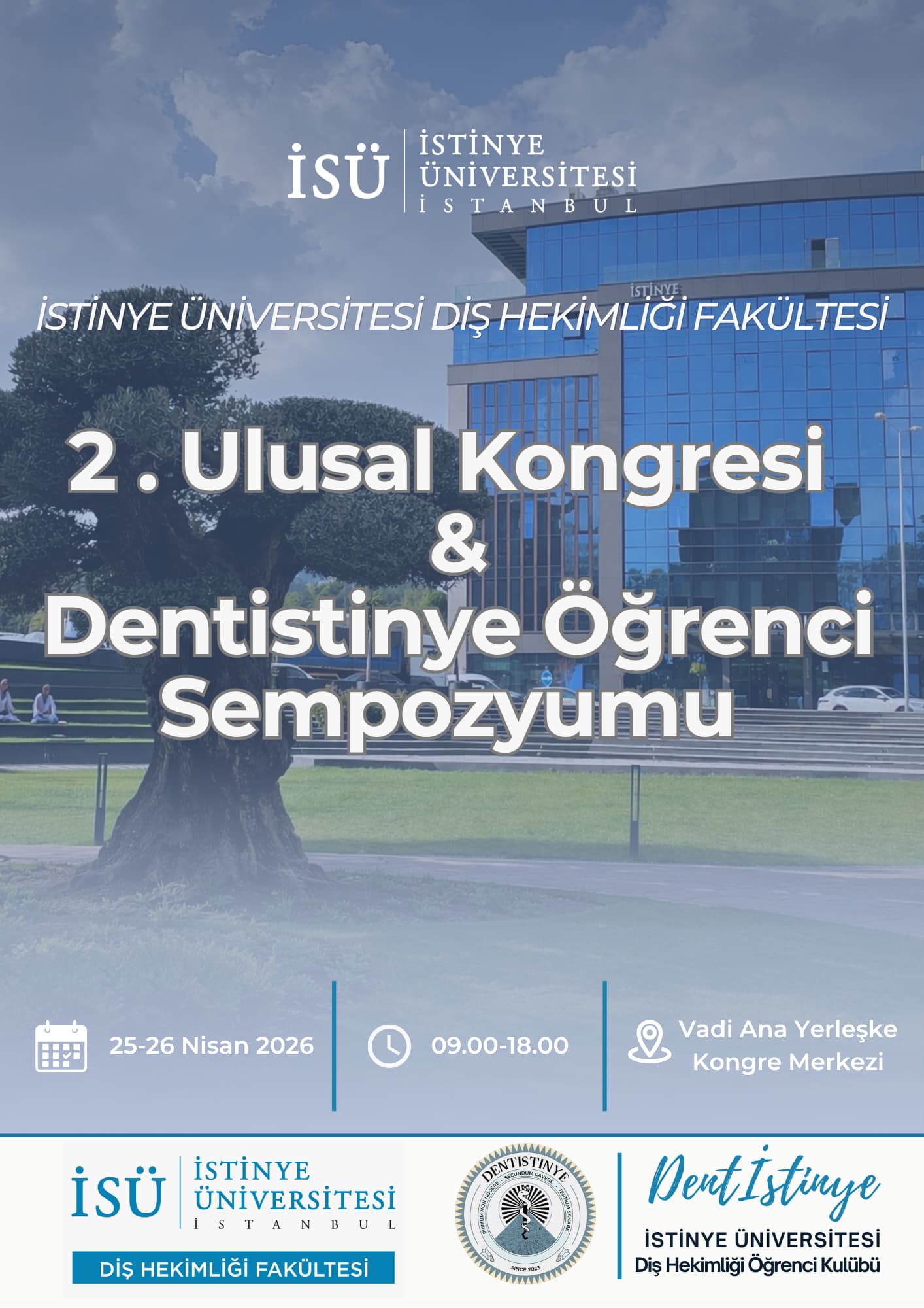İstinye Üniversitesi, Diş Hekimliği Fakültesi tarafından 25-26 Nisan 2026 tarihlerinde gerçekleşecek olan “İstinye Üniversitesi Diş Hekimliği Fakültesi 2. Ulusal Kongresi & Dentistinye Öğrenci Sempozyumu” isimli etkinliğe davetlisiniz.