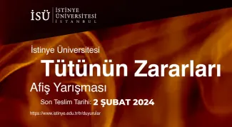 İstinye Üniversitesi İktisadi, İdari ve Sosyal Bilimler Fakültesi tarafından yürütülen "Üniversite Öğrencilerinde Sigara Farkındalığını Arttırma ve Davranış Değişikliği Oluşturma Müdahaleleri: Tütünsüz Fakülte Projesi" isimli ve 222K276 numaralı Tübitak 3005 Projesi kapsamında öğrencilerinin sanat ve tasarım yoluyla kendilerini ifade etmelerine fırsat vermek ve özgün çalışmalarını değerlendirmek amacıyla İstinye Üniversitesi’ndeki tüm önlisans ve lisans öğrencilerimize açık “Tütünün Zararları” konulu bir afiş yarışması düzenlemektedir. Yarışmaya katılacak üniversite öğrencilerimizin tütünün zararlarını araştırmaları, yorumlamaları, kendi duygu ve düşünleri yönünde betimlemeleri beklenmektedir.