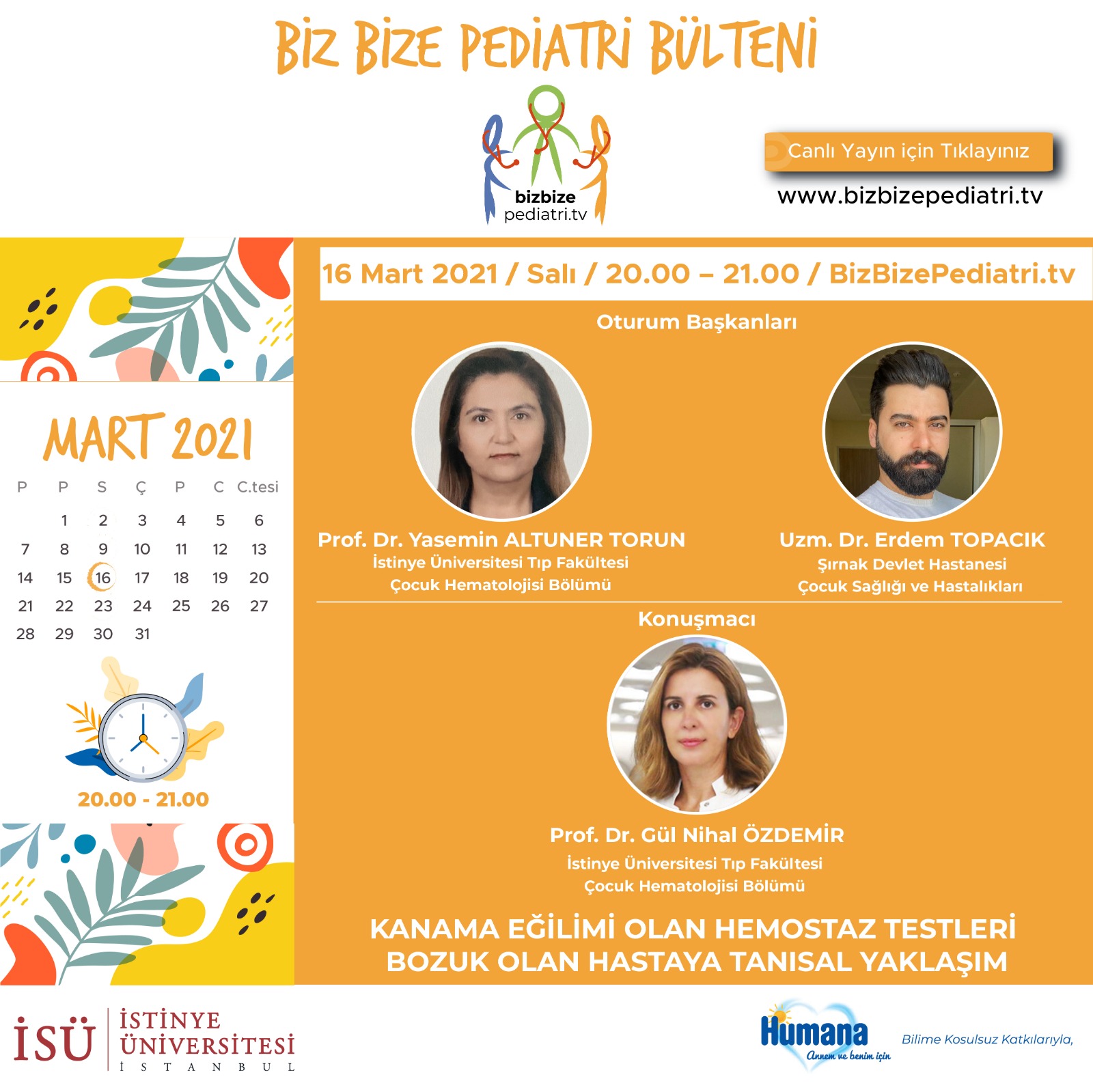 Kanama Eğilimi Olan Hemostaz Testleri Bozuk Olan Hastaya Tanısal Yaklaşım www.bizbizepediatri.tv adresinden canlı olarak gerçekleşecektir.