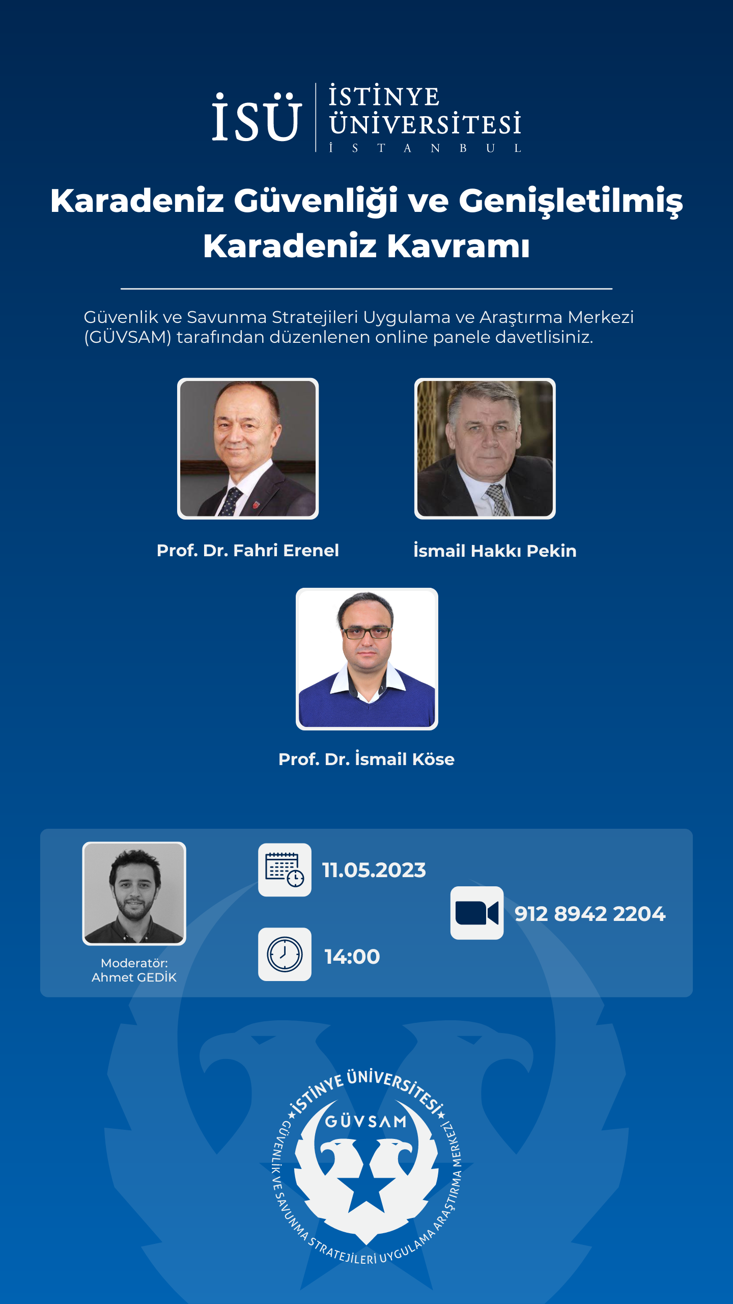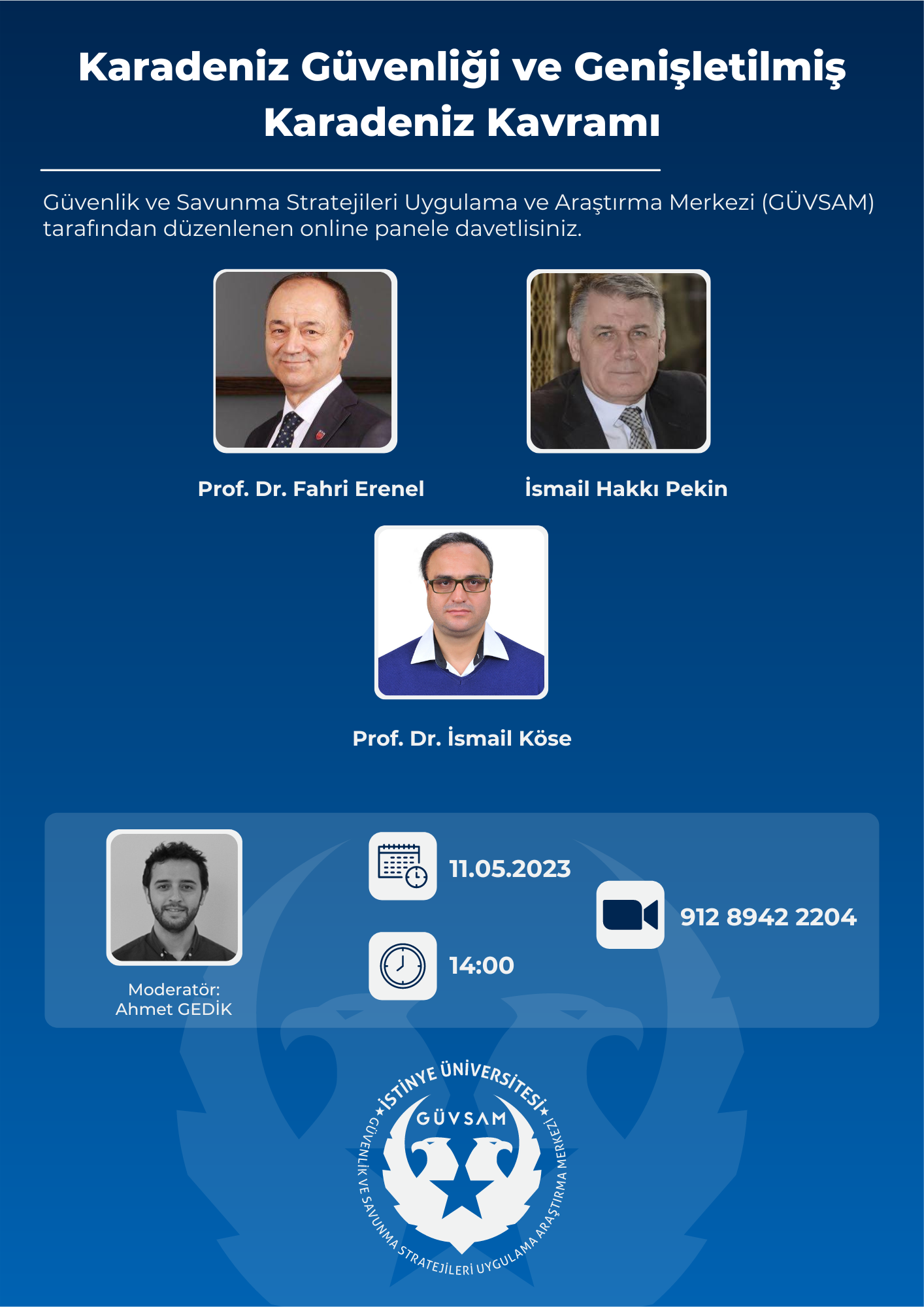 Güvenlik ve Savunma Stratejileri Uygulama ve Araştırma Merkezi (GÜVSAM) tarafından 11 Mayıs Perşembe günü saat 14.00'te çevrim içi olarak gerçekleştirilecek etkinliğe davetlisiniz.