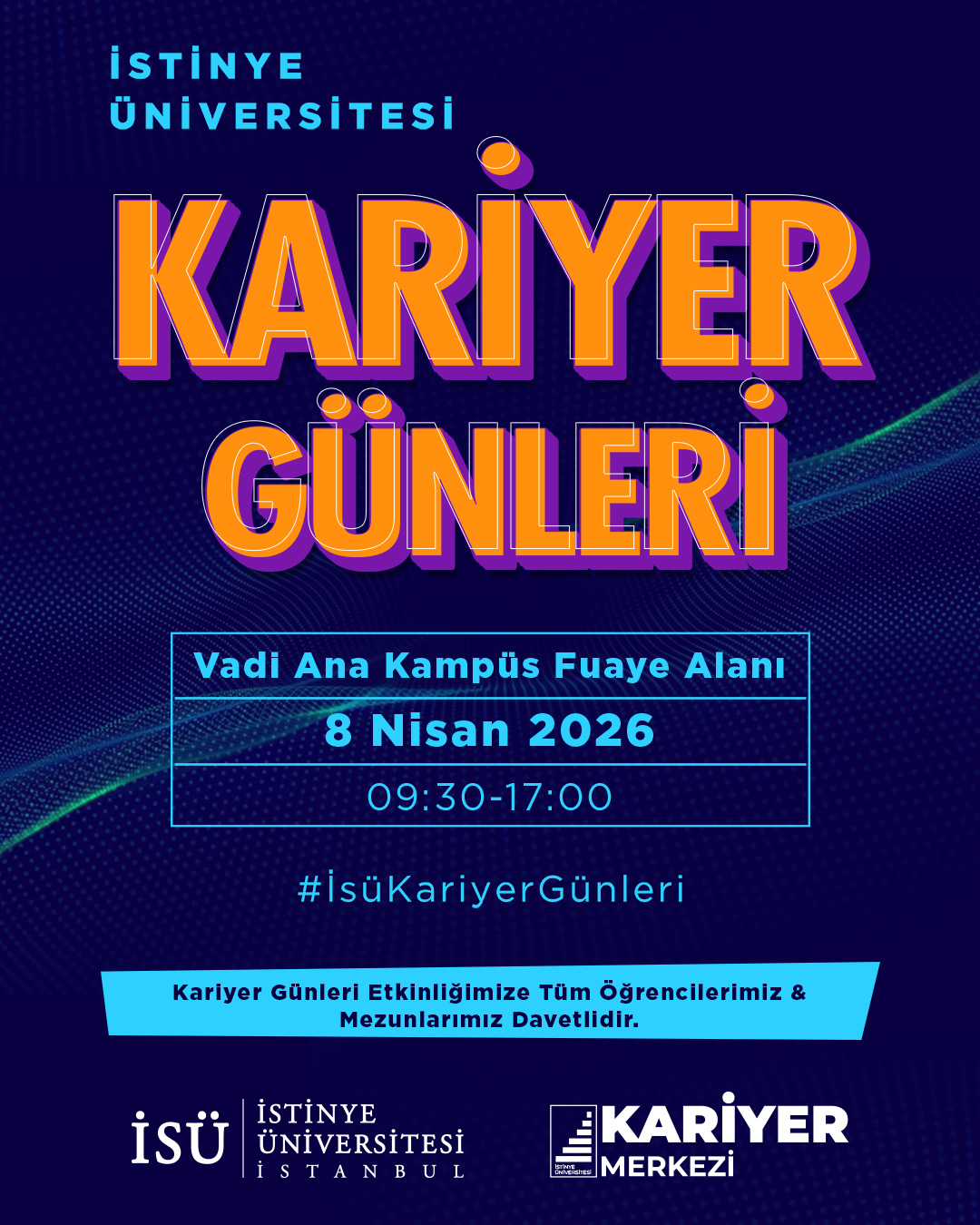 8 Nisan 2026 tarihinde Vadi Ana Yerleşkemizde gerçekleştireceğimiz Kariyer Günleri etkinliğimizde öğrencilerimizi sektörün önde gelen profesyonelleriyle bir araya getirmekten büyük mutluluk duyuyoruz.
