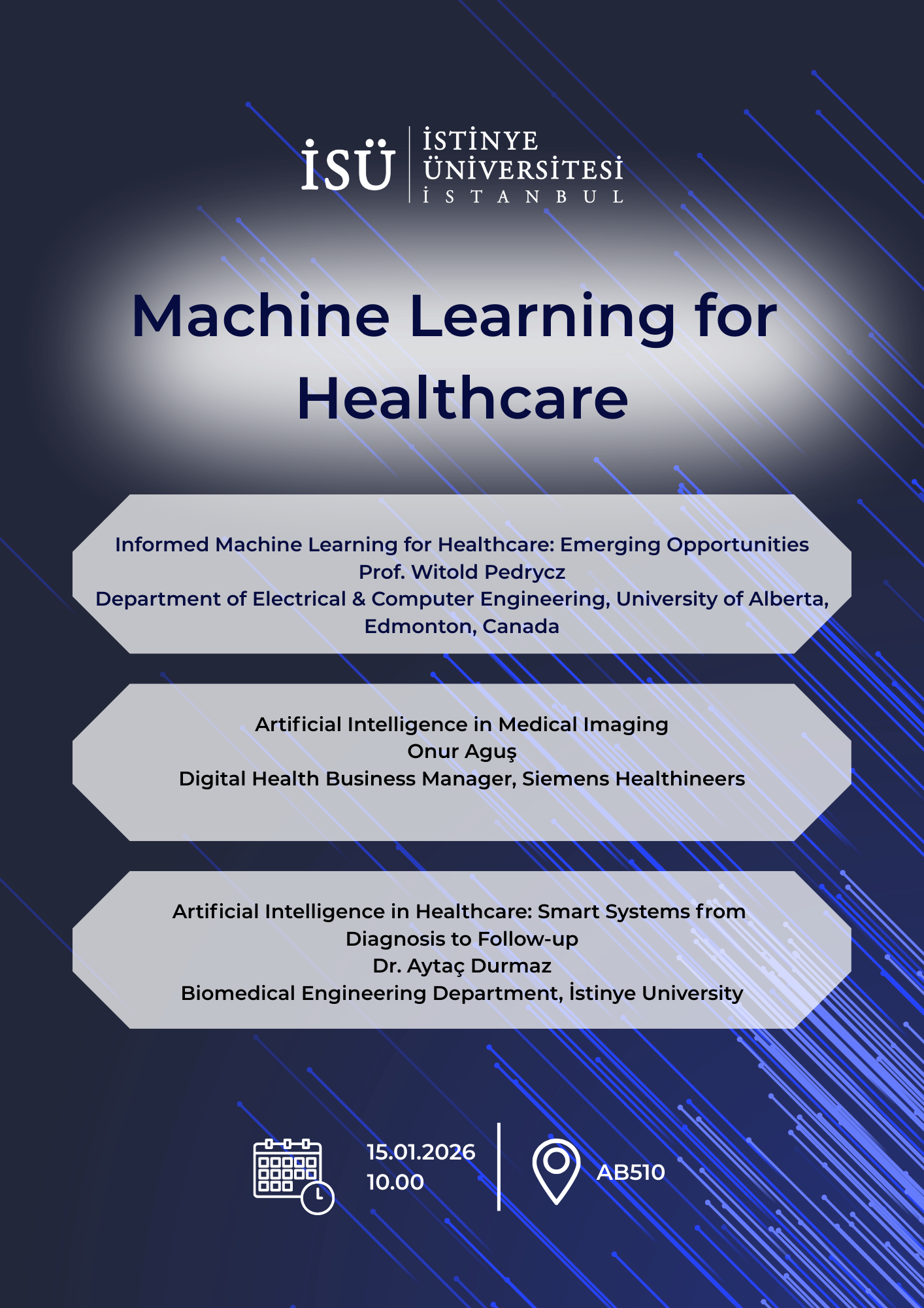 İstinye Üniversitesi, Mühendislik ve Doğa Bilimleri Fakültesi tarafından 15 Ocak 2026, saat 09.00'da gerçekleşecek olan “Machine Learning for Healthcare” isimli etkinliğe davetlisiniz.