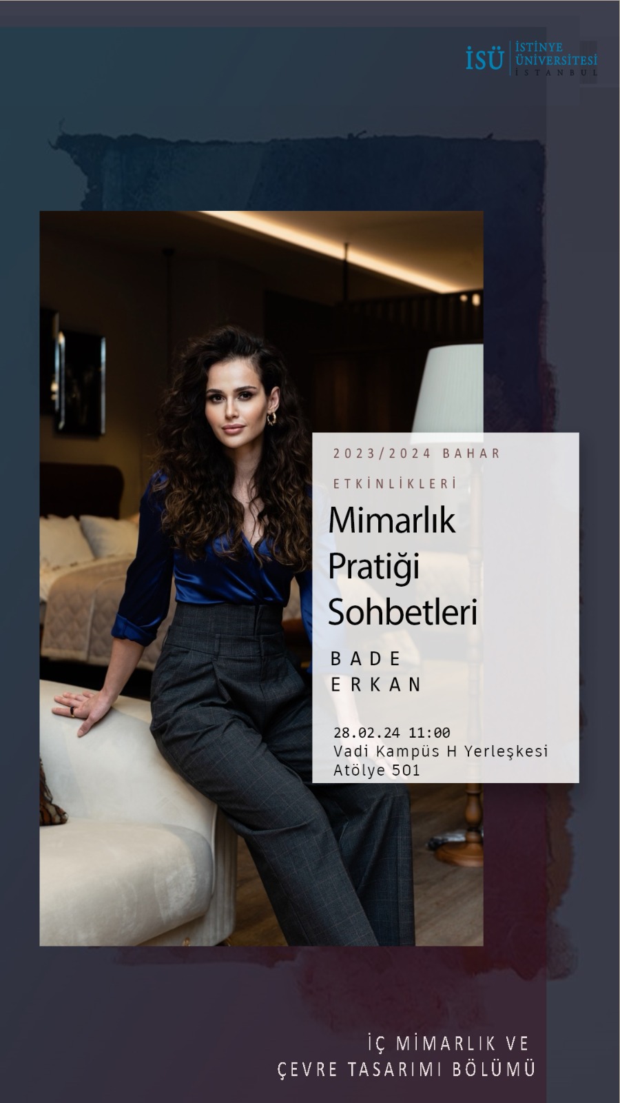 İstinye Üniversitesi İç Mimarlık ve Çevre Tasarımı Bölümü tarafından 28 Şubat Çarşamba Günü saat 11.00'de Vadi H Yerleşkesi 501'de gerçekleştirilecek etkinliğe davetlisiniz.