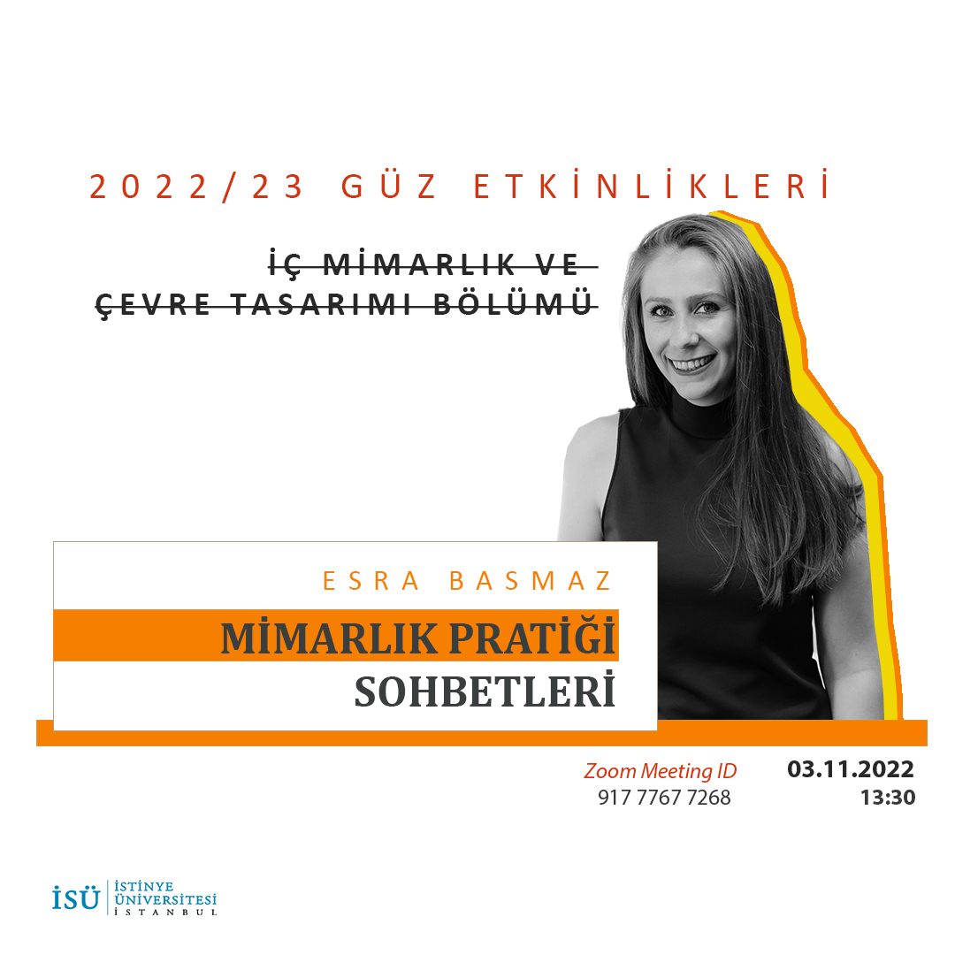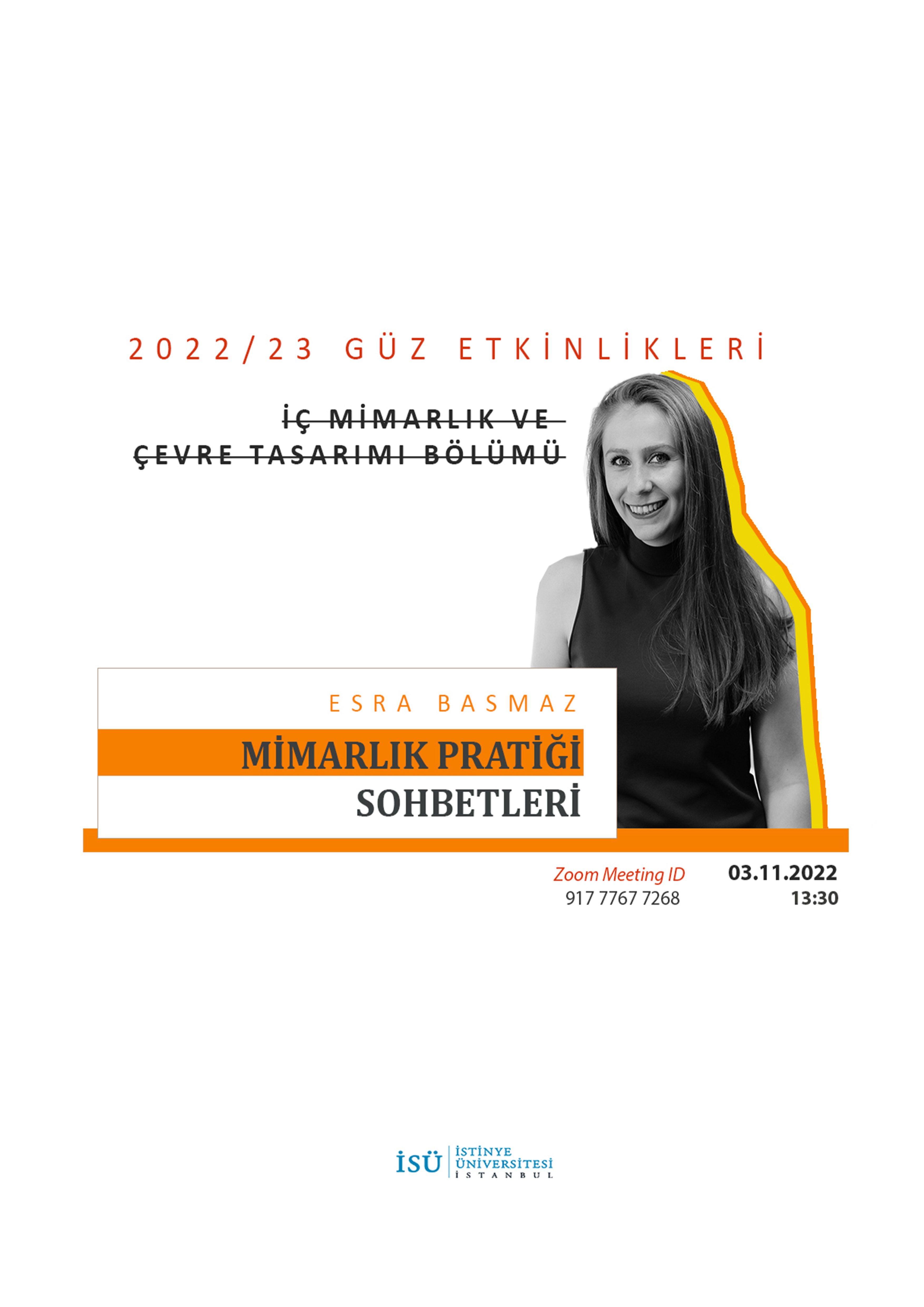İstinye Üniversitesi İç Mimarlık ve Çevre Tasarımı Bölüm Başkanlığı tarafından 3 Kasım Perşembe Günü saat 13.30'da çevrim içi olarak gerçekleştirilecek etkinliğe davetlisiniz.
