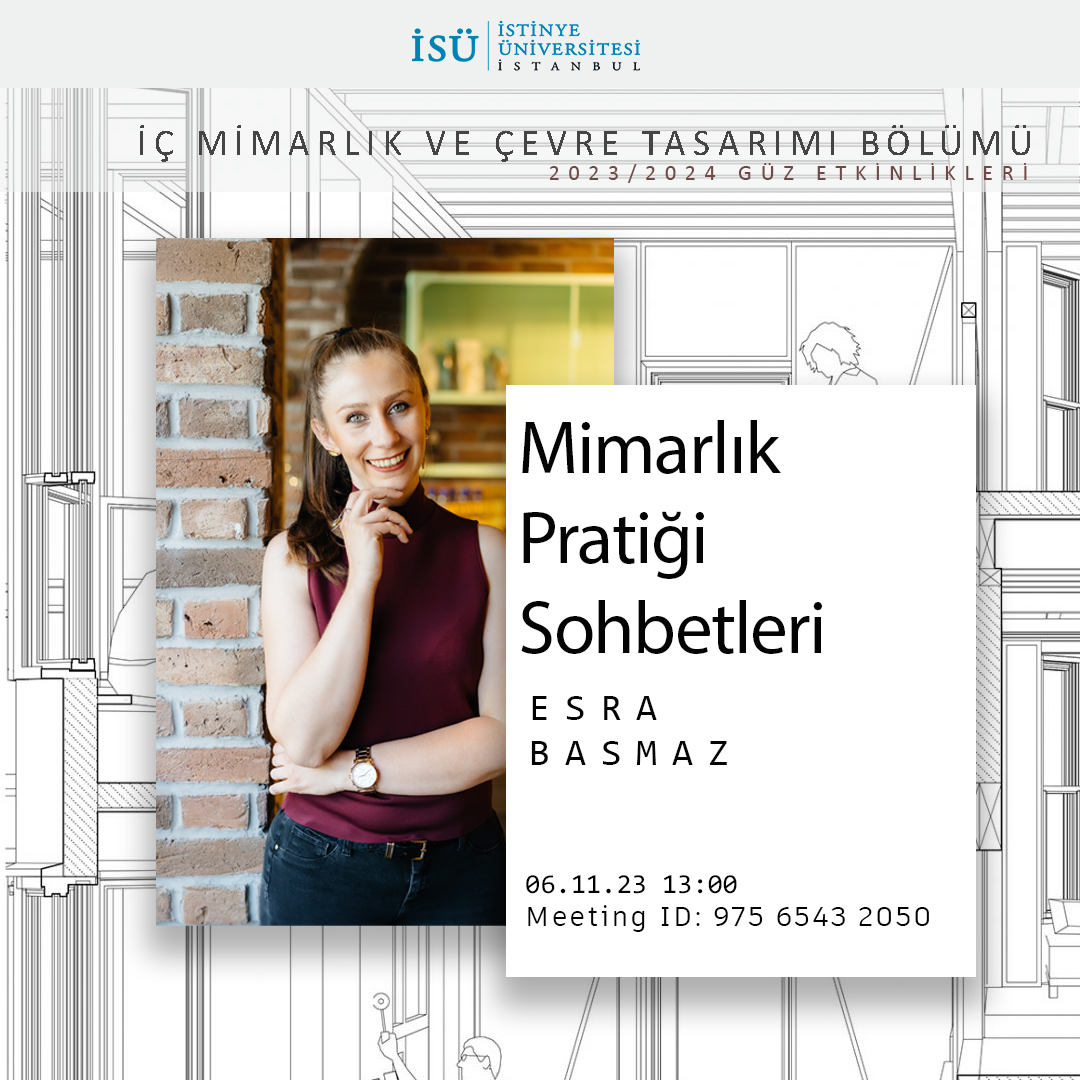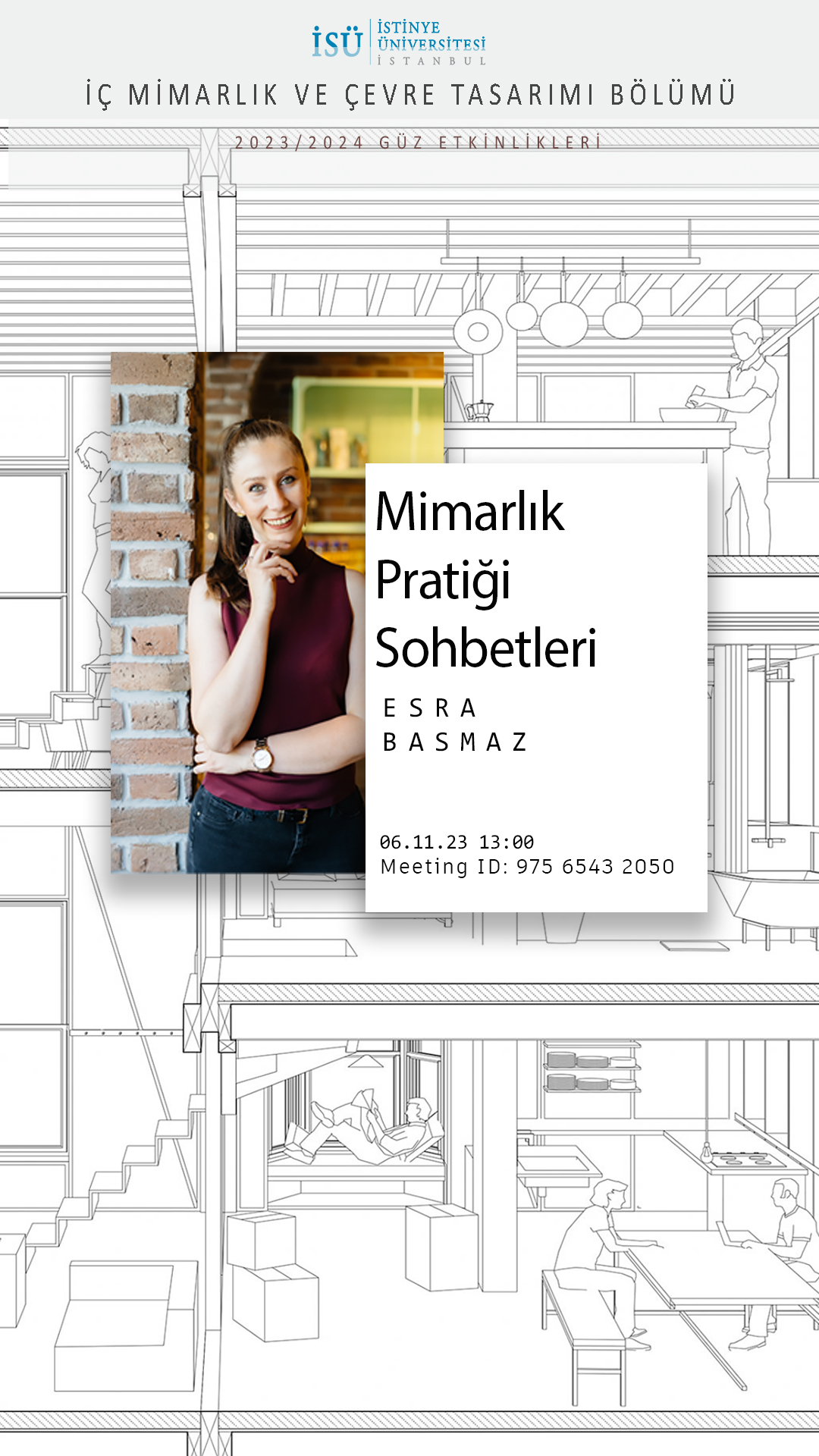 İstinye Üniversitesi İç Mimarlık ve Çevre Tasarımı Bölümü tarafından 6 Kasım Pazartesi Günü saat 13.00'da çevrim içi olarak gerçekleştirilecek etkinliğe davetlisiniz.