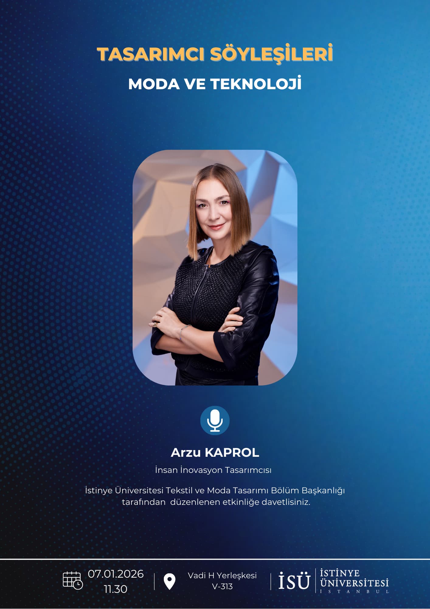 İstinye Üniversitesi, Tekstil ve Moda Tasarımı Bölümü tarafından 7 Ocak 2026, saat 11.30'da gerçekleşecek olan “Moda ve Teknoloji” isimli etkinliğe davetlisiniz.