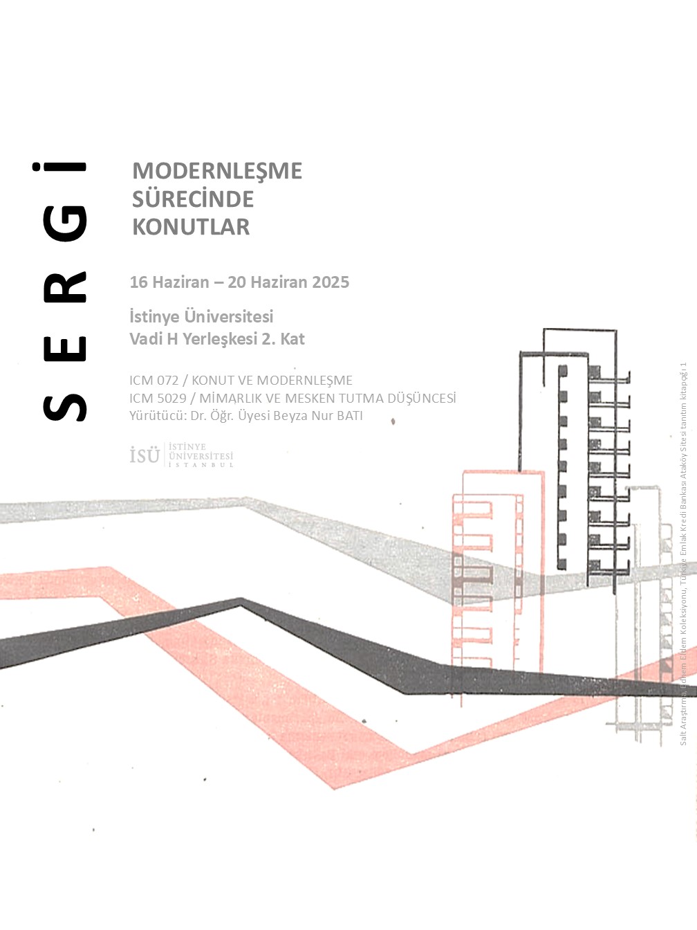 İstinye Üniversitesi İç Mimarlık ve Çevre Tasarımı Bölümünün düzenlediği “Modernleşme Sürecinde Konutlar” Sergisini, Vadi H Yerleşke, 2. Kat sosyal alanda, 16-20 Haziran 2025 tarihleri arasında ziyaret edebilirsiniz.