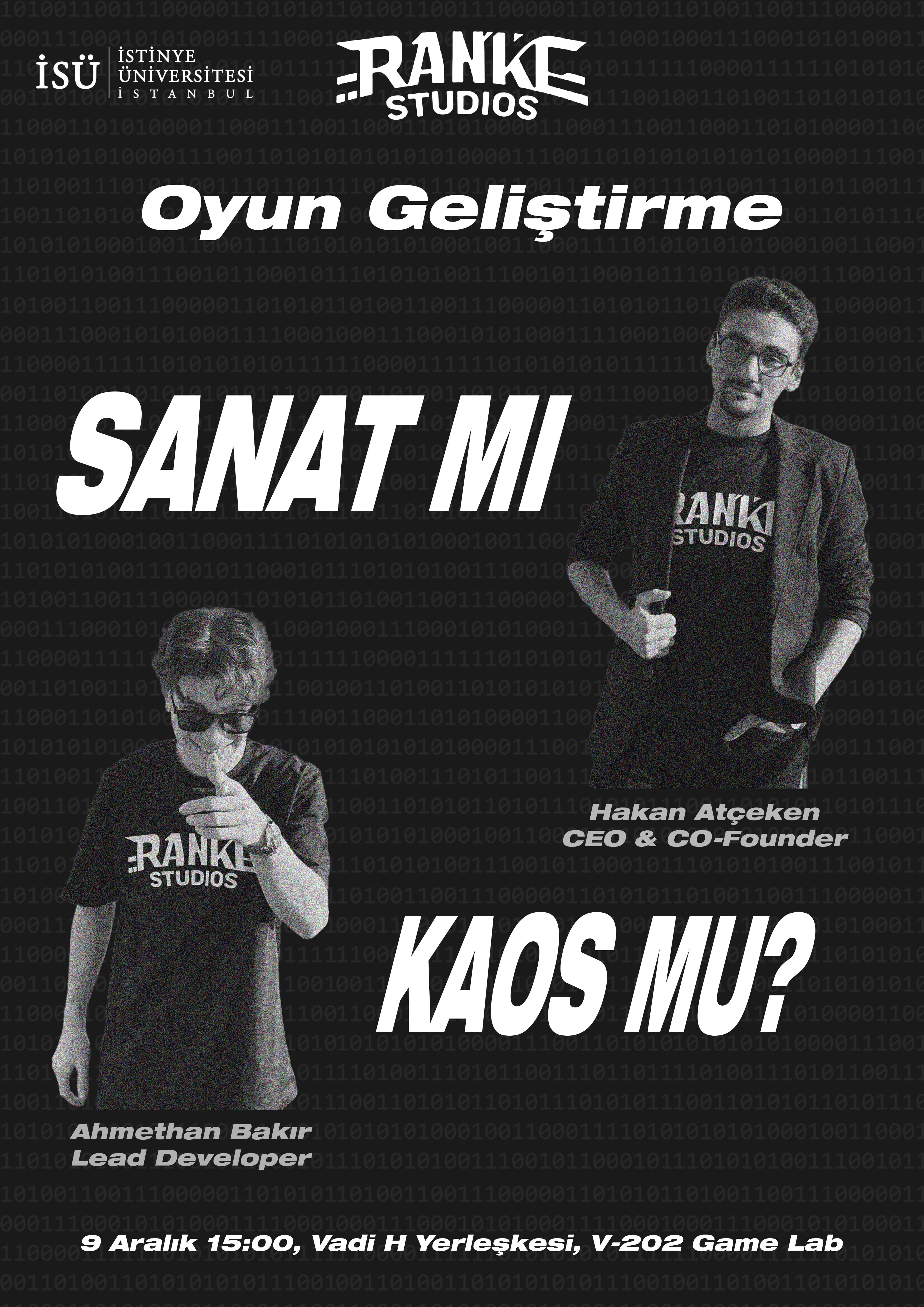İstinye Üniversitesi Dijital Oyun Tasarımı Bölümü tarafından 9 Aralık 2025, saat 15.00’da gerçekleşecek olan “Oyun Geliştirme: Sanat mı, Kaos mu? Ranke Studios” isimli etkinliğe davetlisiniz.