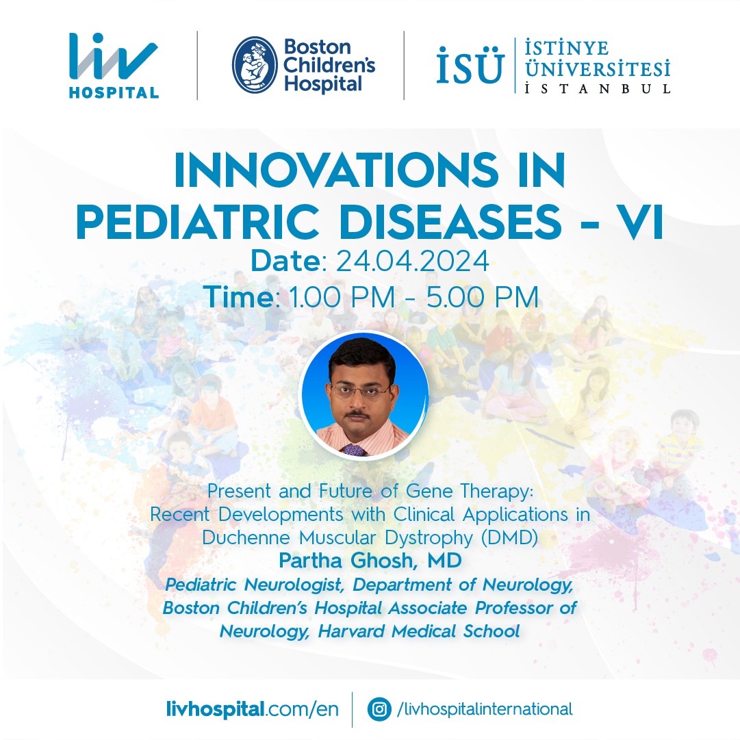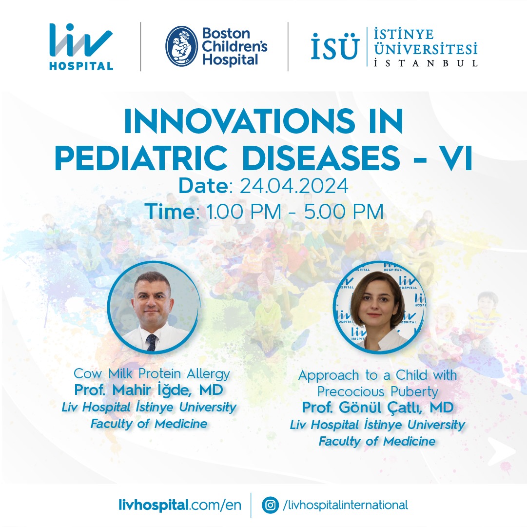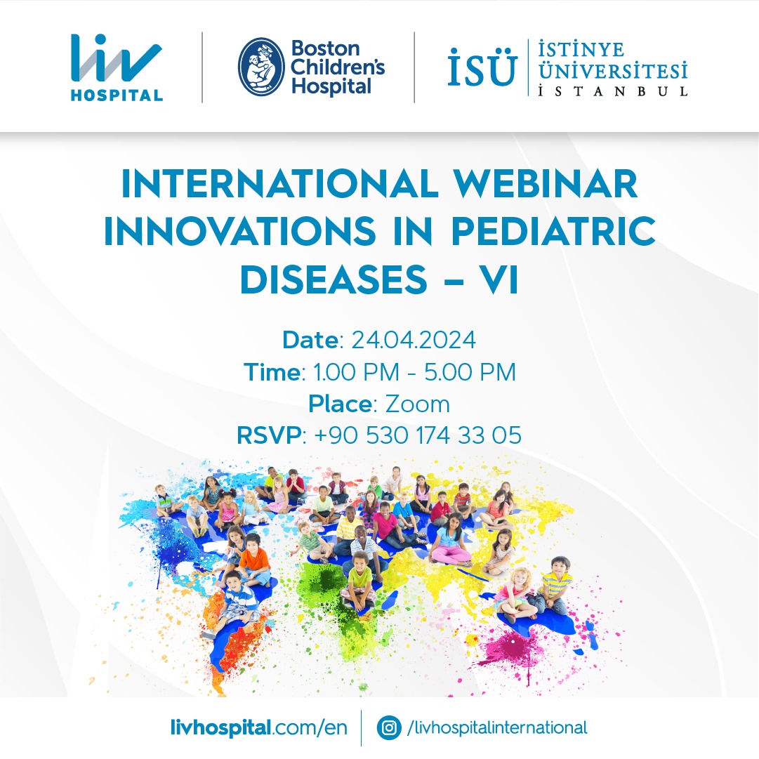 İstinye Üniversitesi, Liv Hospital ve Boston Children's Hospital iş birliğiyle düzenlenen "Pediatrik Hastalıklarda Yenilikler-VI" Semineri, 24 Nisan 2024, Çarşamba günü saat 13.00'da çevrim içi olarak gerçekleşecektir.