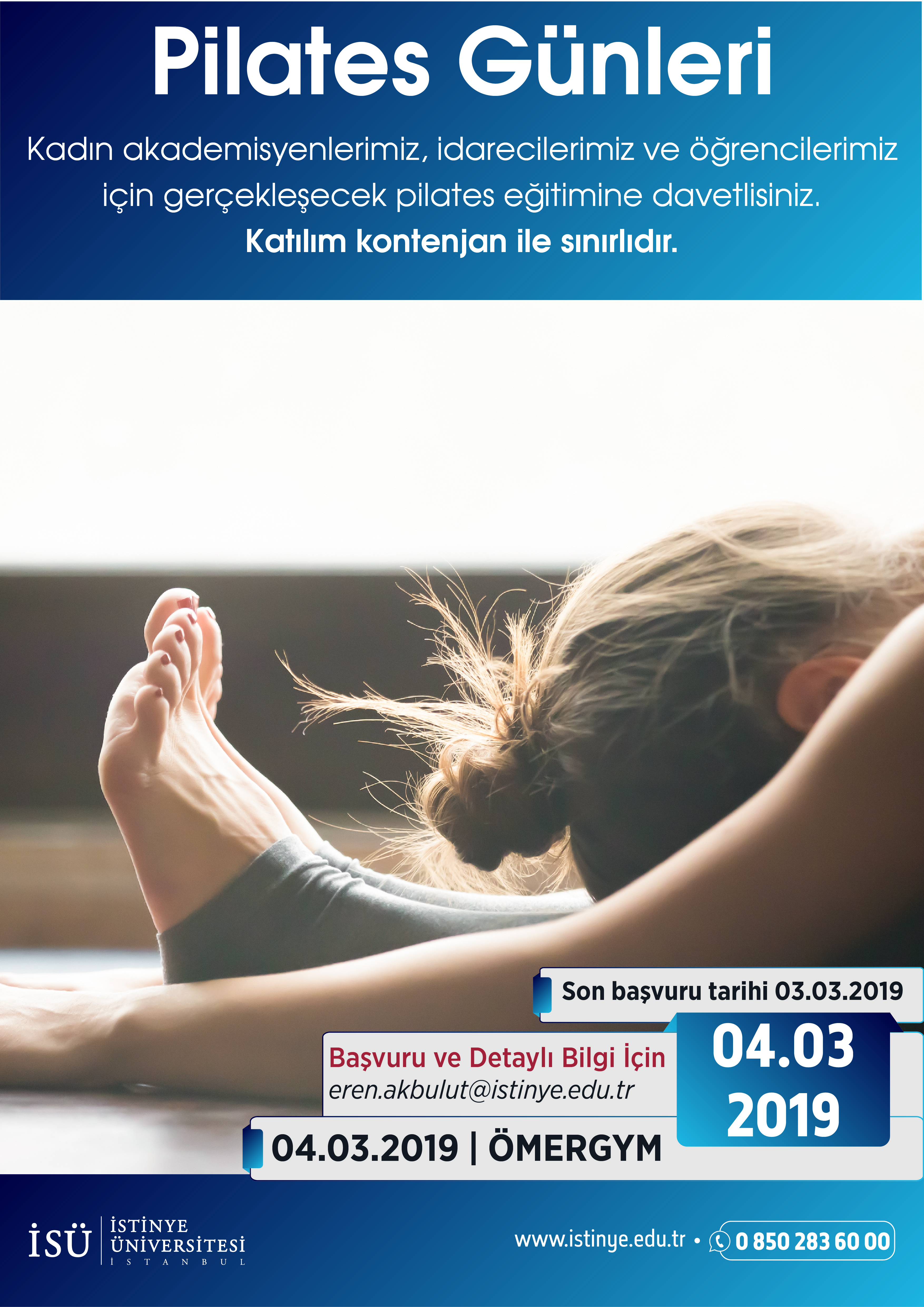 Kadın akademisyenlerimiz, idarecilerimiz ve öğrencilerimiz için gerçekleşecek pilates eğitimine davetlisiniz.