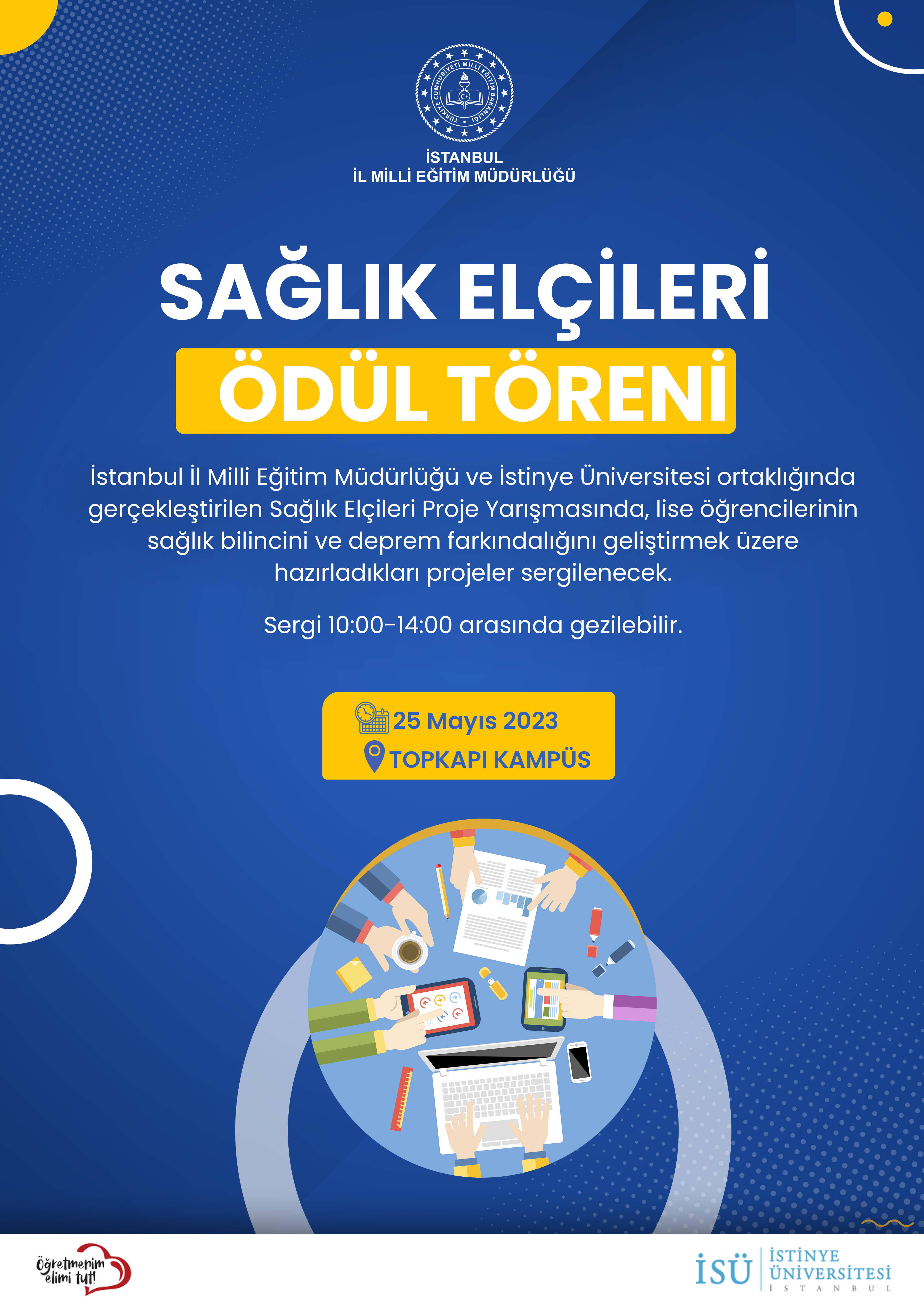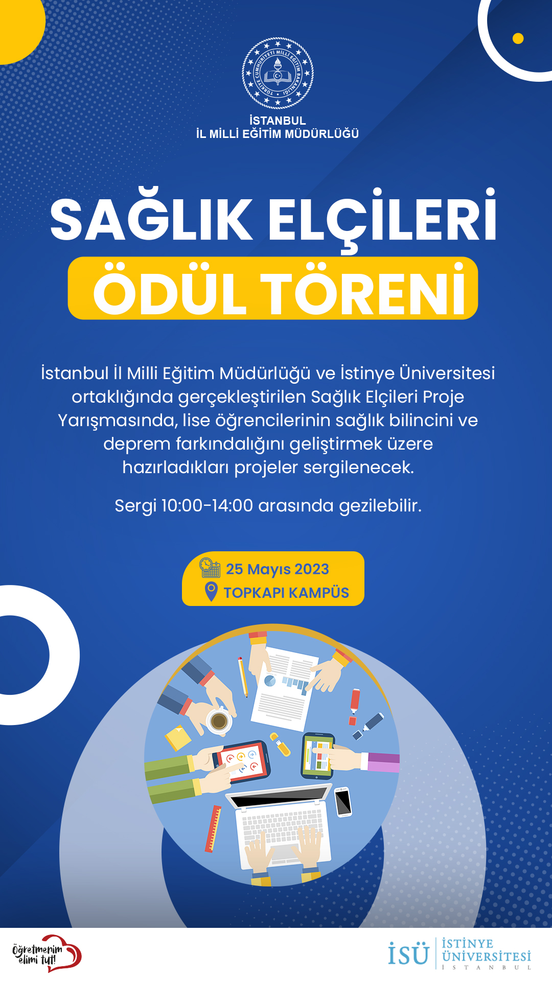 Sağlık Elçileri Proje Yarışmasında, lise öğrencilerinin sağlık bilincini ve deprem farkındalığını geliştirmek üzere hazırladıkları projeler sergilenecektir.