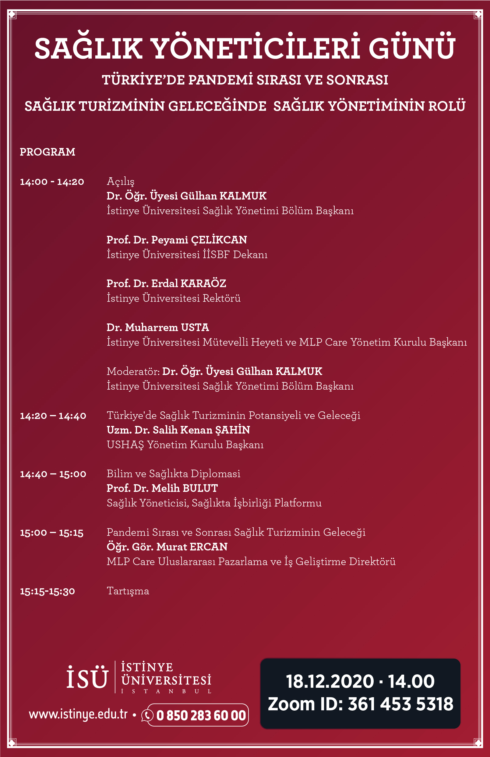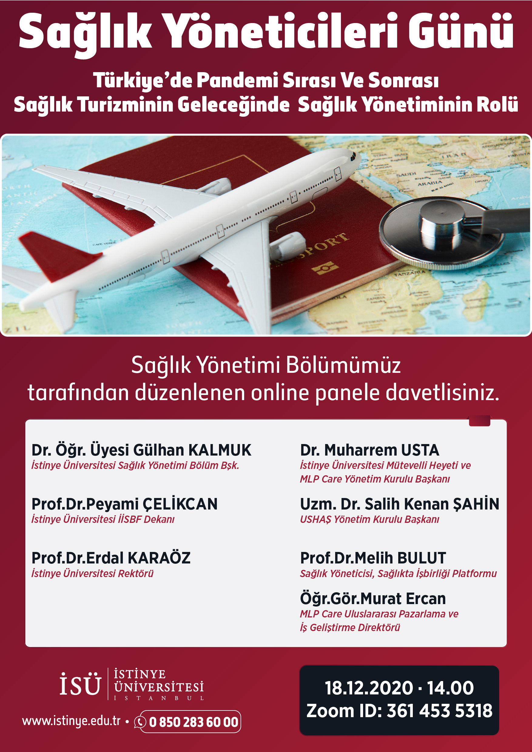 Türkiye’de Pandemi Sırası Ve Sonrası Sağlık Turizminin Geleceğinde Sağlık Yönetiminin Rolü üzerine gerçekleştirilecek olan panele davetlisiniz.