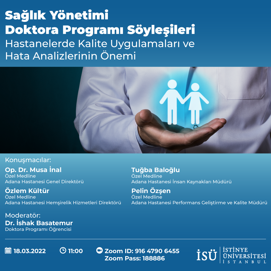 Etkinlik: Sağlık Yönetimi Doktora Programı Söyleşileri ''Hastanelerde Kalite Uygulamaları ve Hata Analizlerinin Önemi''