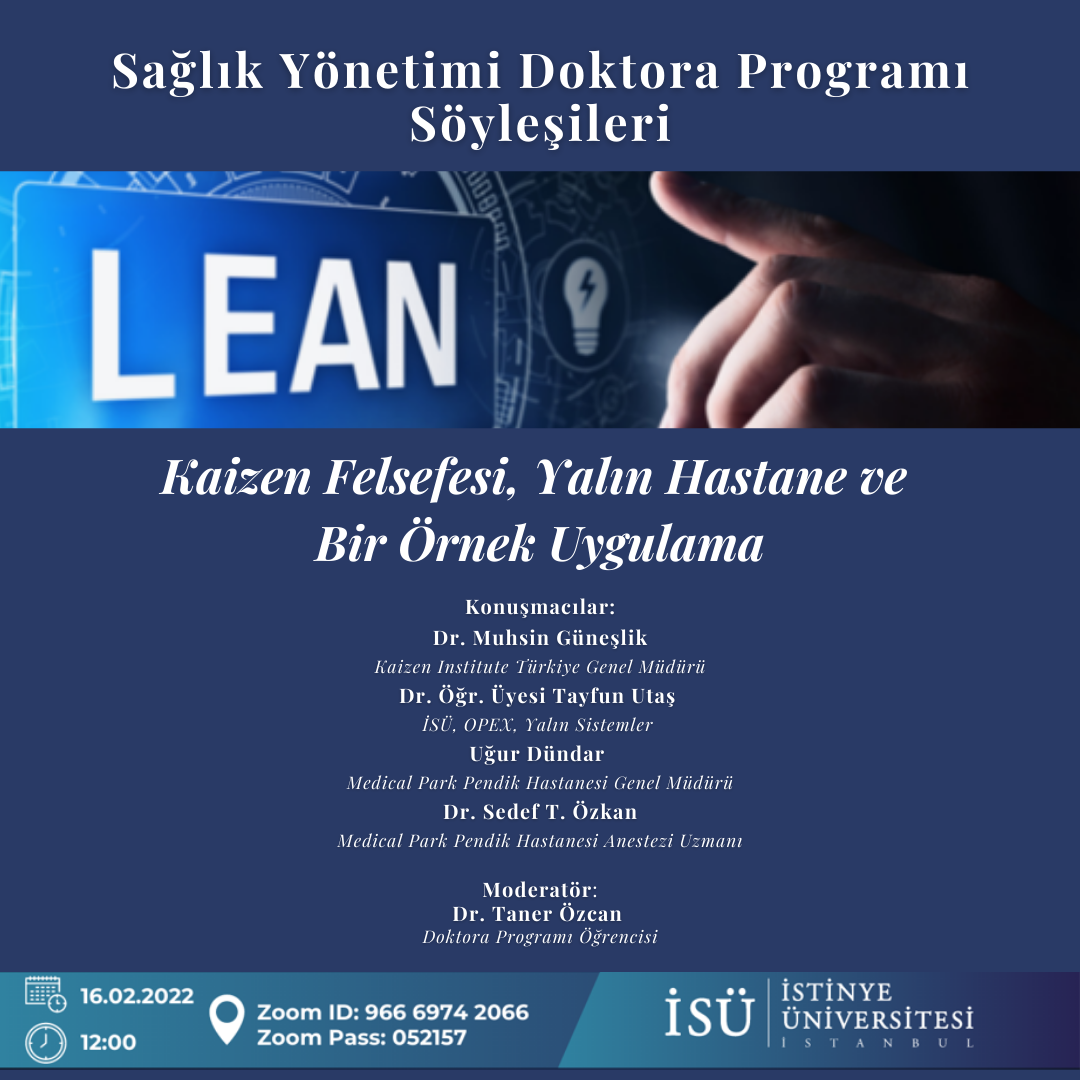 Etkinlik: Sağlık Yönetimi Doktora Programı Söyleşileri “Kaizen Felsefesi, Yalın Hastane ve Bir Örnek Uygulama”