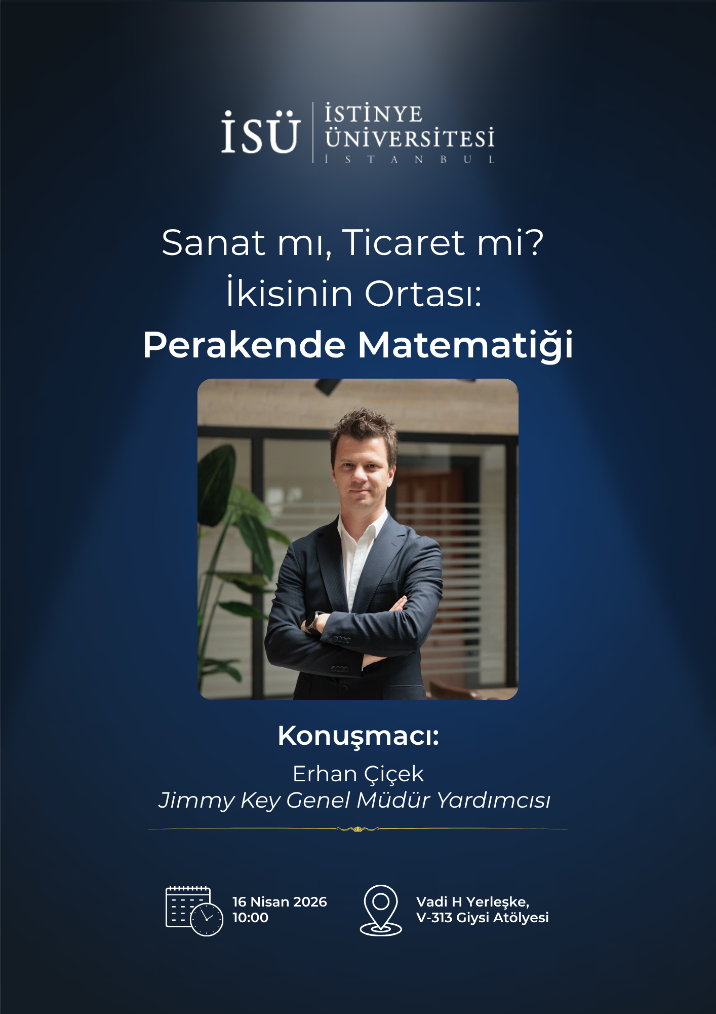 İstinye Üniversitesi, Tekstil ve Moda Tasarımı Bölümü tarafından 16 Nisan 2026 tarihinde gerçekleşecek olan “Sanat mı, Ticaret mi? İkisinin Ortası: Perakende Matematiği” isimli etkinliğe davetlisiniz.
