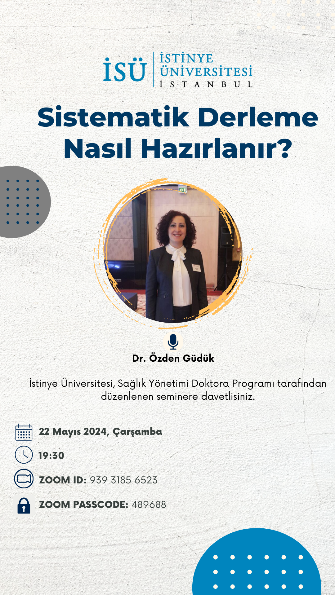 İstinye Üniversitesi Lisansüstü Eğitim Enstitüsü Sağlık Yönetimi Doktora Programı tarafından 22 Mayıs 2024 Çarşamba günü saat 19:30'da gerçekleştirilecek seminere davetlisiniz.