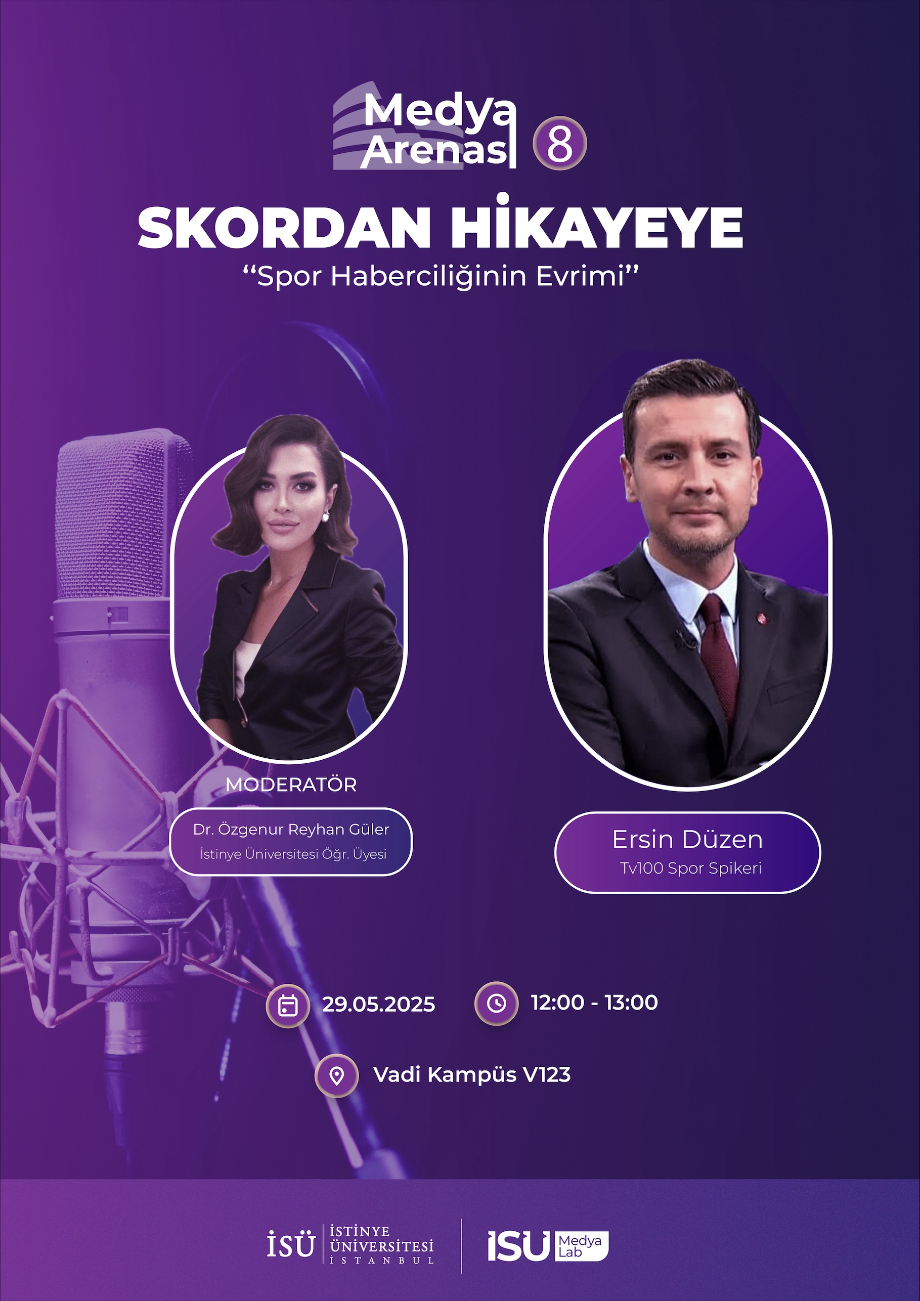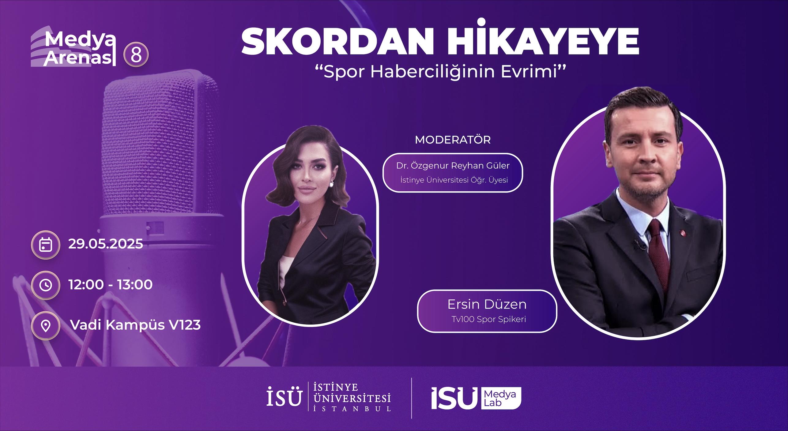 İstinye Üniversitesi İletişim Fakültesi Medya Merkezi tarafından 29 Mayıs 2025 Perşembe günü, saat 12.00'de Vadi H Yerleşke Konferans Salonu'nda Ersin Düzen'in katılımıyla gerçekleştirilecek olan "Skordan Hikayeye: Spor Haberciliğinin Evrimi" etkinliğine davetlisiniz.