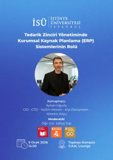 İstinye Üniversitesi, Lojistik Programı tarafından 9 Ocak 2026, saat 14.00'de gerçekleşecek olan “Tedarik Zinciri Yönetiminde Kurumsal Kaynak Planlama (ERP) Sistemlerinin Rolü” isimli etkinliğe davetlisiniz.