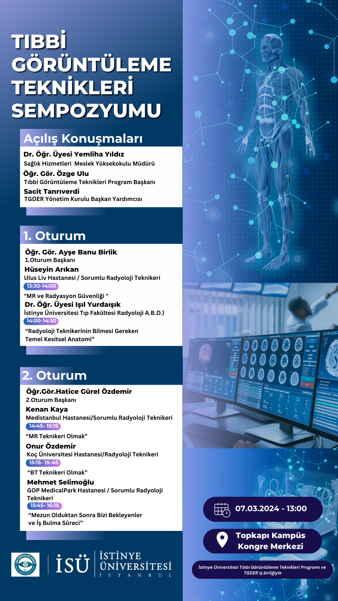 İstinye Üniversitesi, Tıbbi Görüntüleme Teknikleri Programı tarafından 7 Mart 2024 Perşembe günü saat 13:00'te Topkapı Kampüs Kongre Merkezi'nde gerçekleştirilecek sempozyuma davetlisiniz.