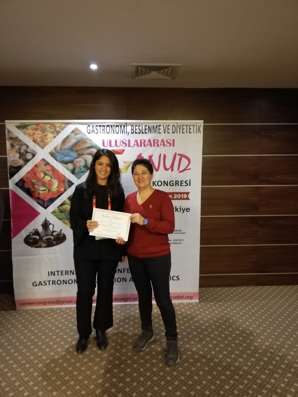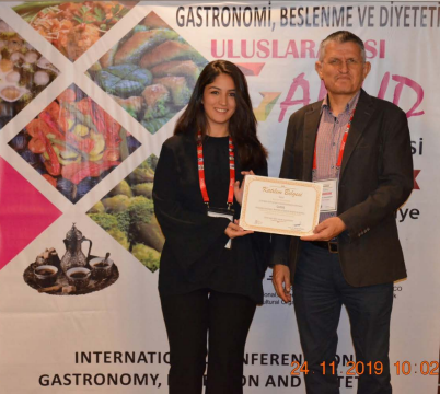 Gastronomi ve Mutfak Sanatları Bölümü'nden Arş.Gör Pelin OLGAY; Prof.Dr.Funda ELMACIOĞLU, Dr.Öğr.Üyesi Çağla ÖZER ve Öğr.Gör.Franck BRUWIER ile hazırlamış olduğu "TÜRKİYE’DE ÜRETİLEN TROPİKAL MEYVELERİN BESİN DEĞERLERİ VE KULLANIM ALANLARI" başlıklı sözlü bildirisini, 22-24 Kasım 2019'da Gaziantep'te gerçekleştirilen "INTERNATIONAL CONFERENCE ON GASTRONOMY, NUTRITION AND DIETETICS (GANUD)" konferansında sundu.