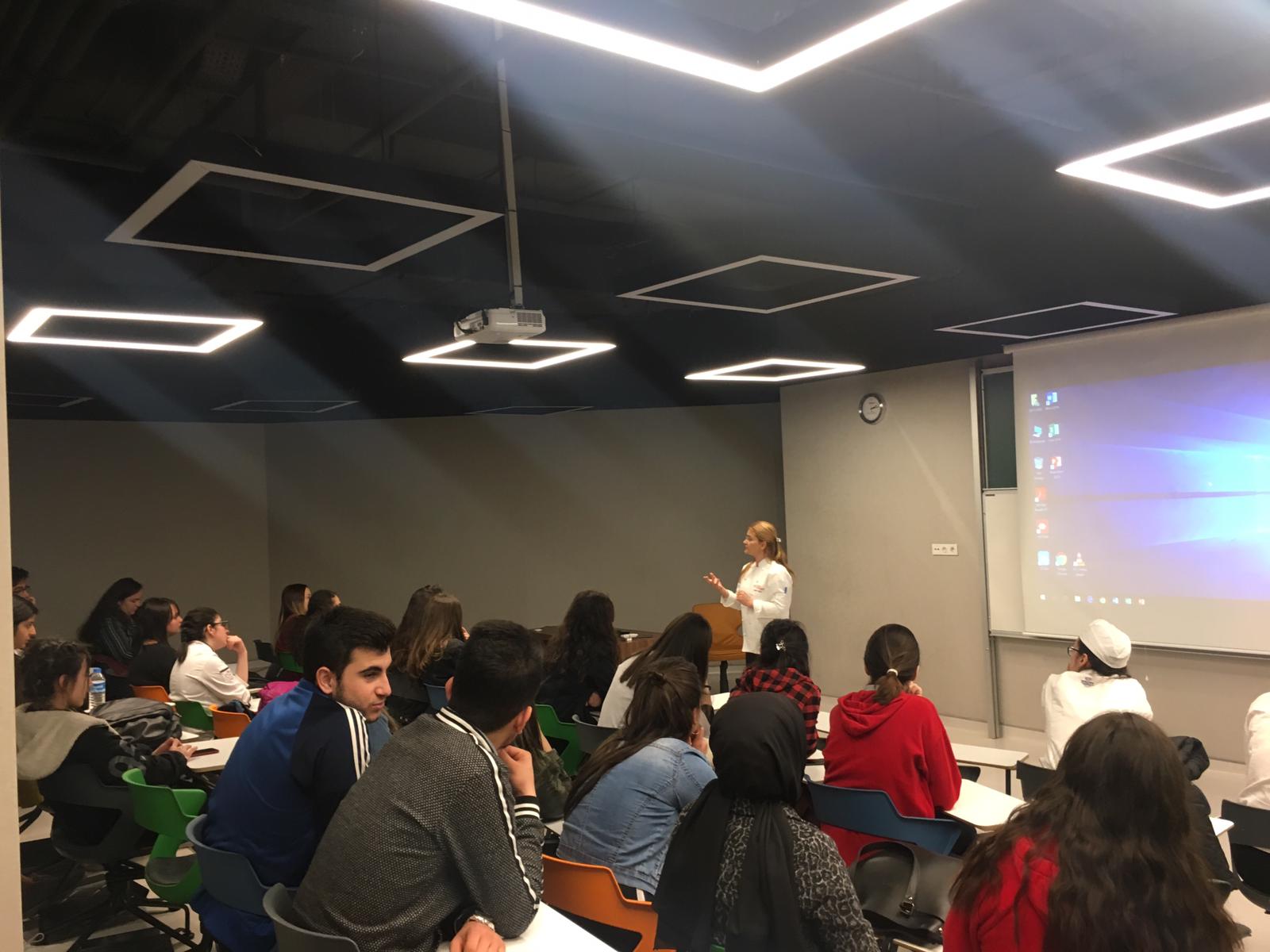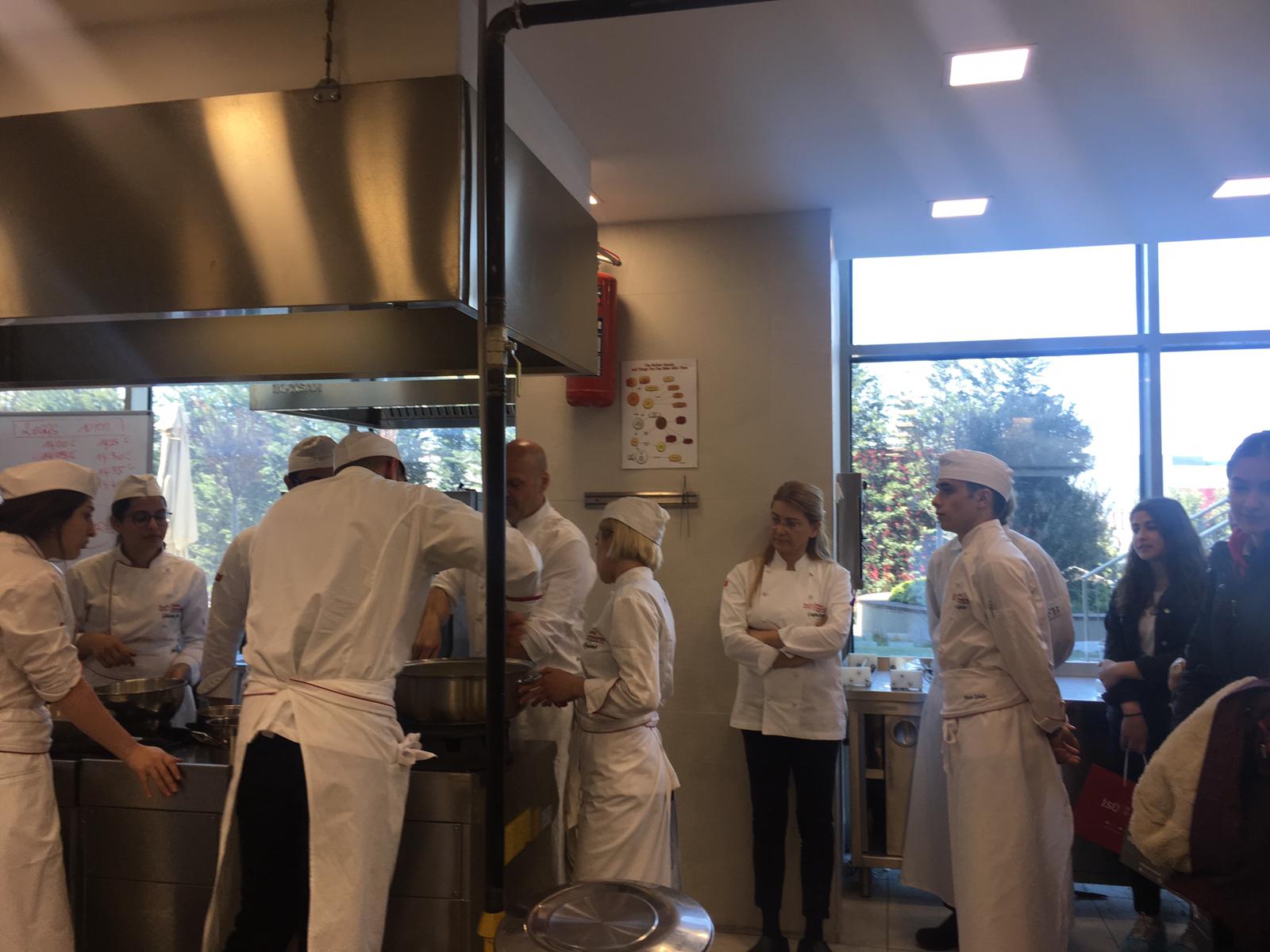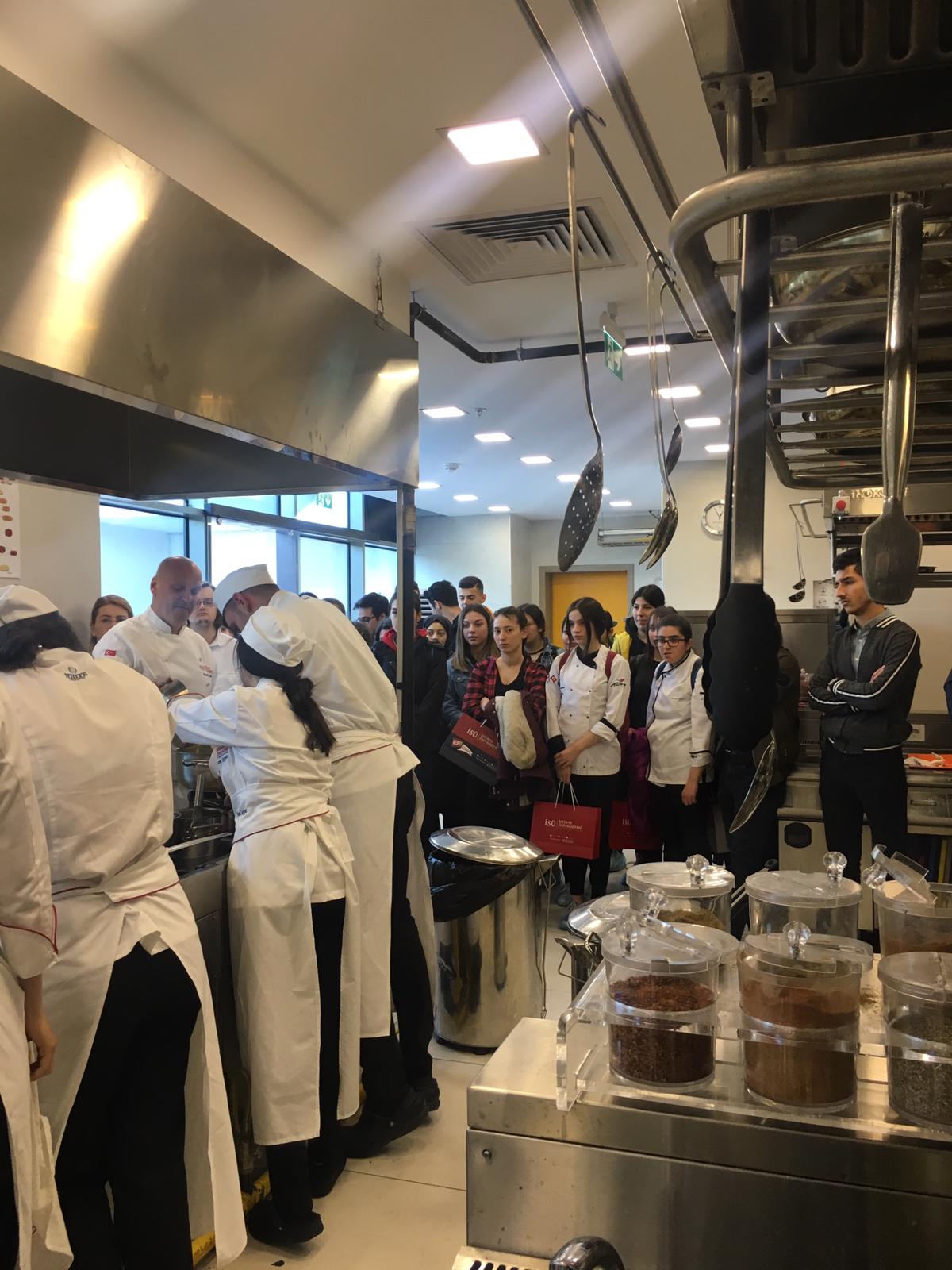 Kartal İMKB Lisesi öğrencileri, İstinye Üniversitesi Güzel Sanatlar, Tasarım ve Mimarlık Fakültesi Gastronomi ve MYO Aşçılık Programı öğrencilerinin derslerinde kullandığı üniversite mutfağı MATBAH'ı ziyaret etti. Son teknoloji cihazlarla kurgulanmış mutfakta derse girme fırsatı bulan öğrenciler, Gastronomi ve Mutfak Sanatları Bölüm Başkanı Dr. Öğr. Üyesi Çağla ÖZER'den bölümler hakkında bilgi aldı.