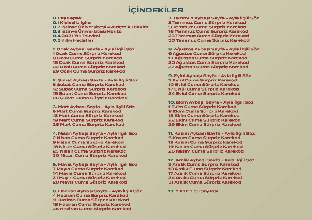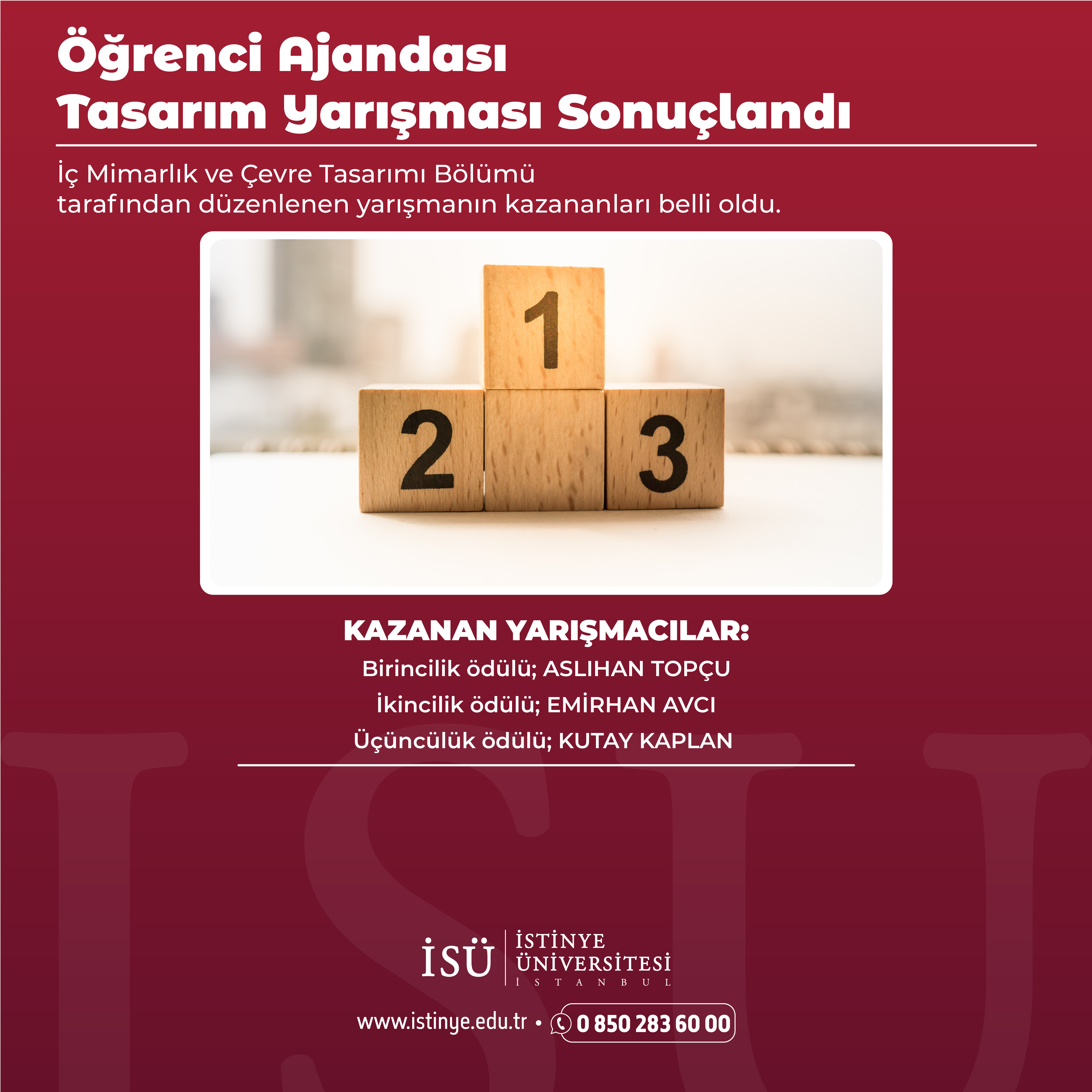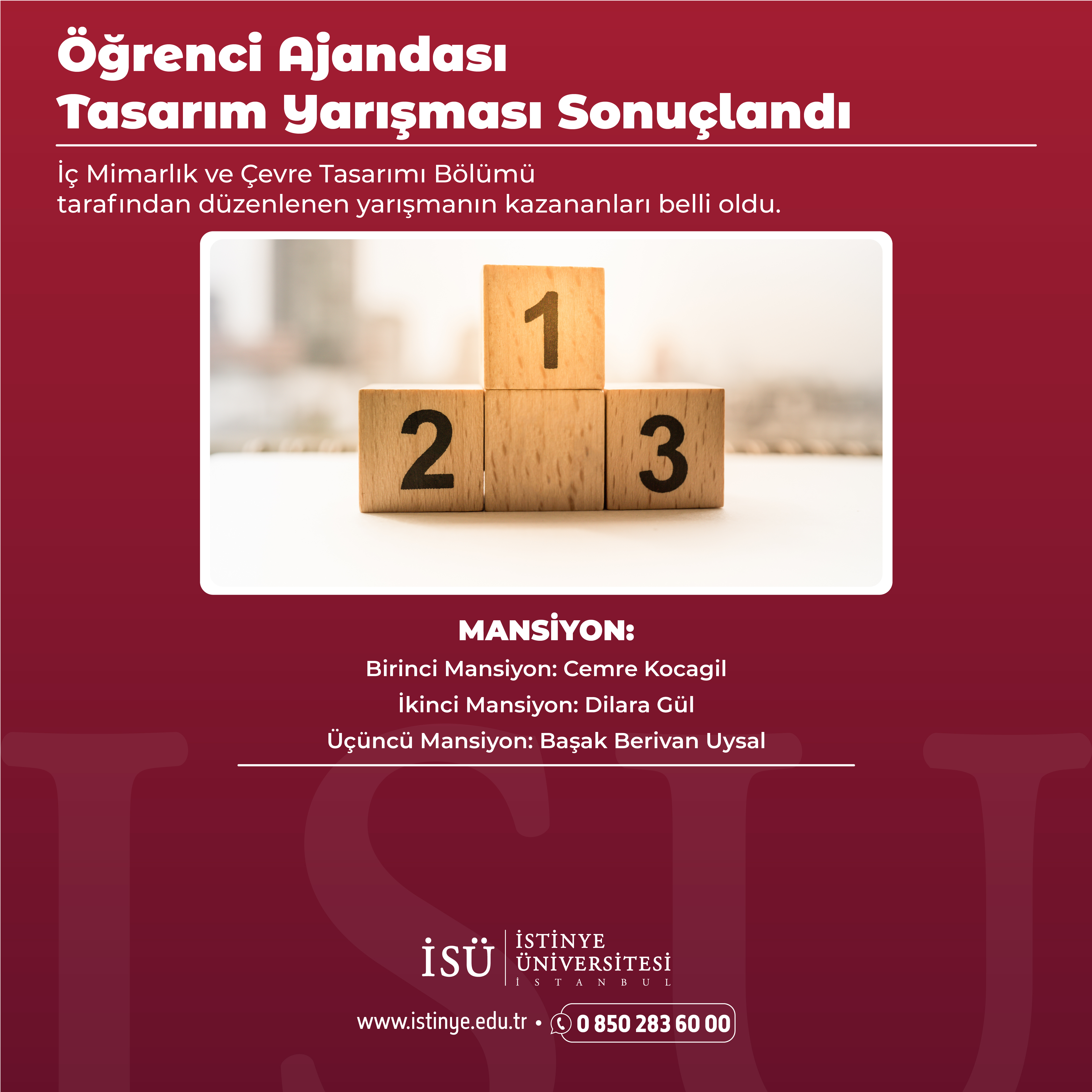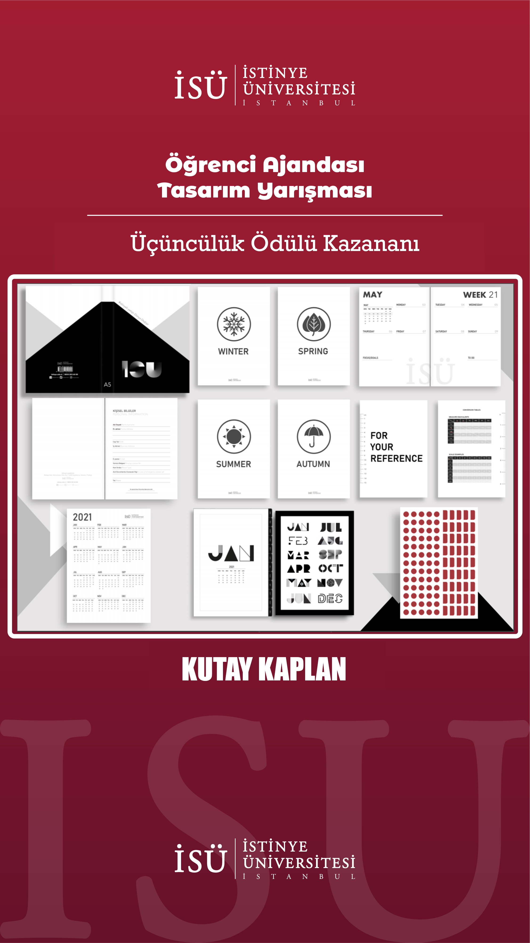 2020-21 Güz Yarıyılında İç Mimarlık ve Çevre Tasarımı Bölümü öğrencilerinin Portfolyo dersi kapsamında yaptıkları ajanda çalışmaları yarışma kapsamında değerlendirilmiştir. Katılım gösteren bütün öğrencilerimize teşekkür ederiz.