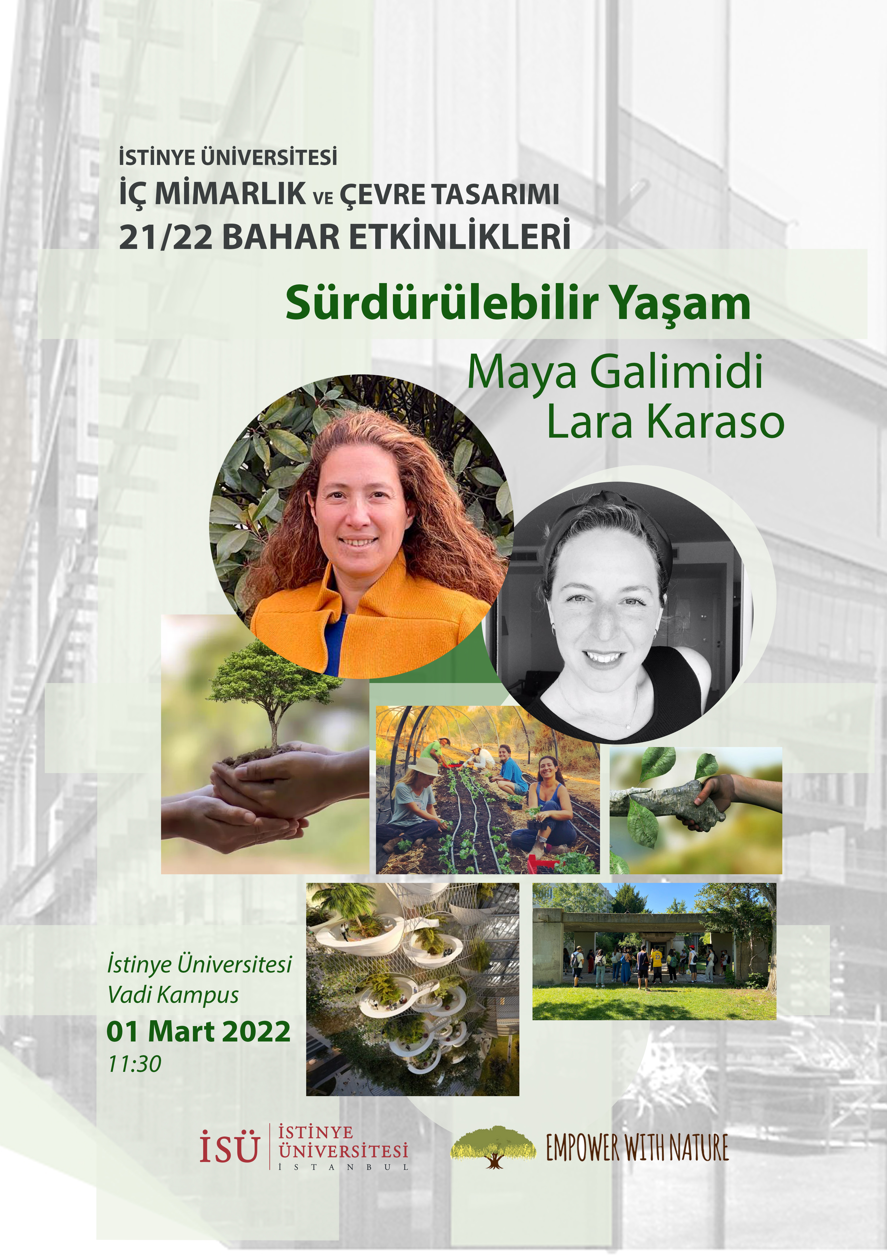 Empower with Nature kurucu ortaklarından Maya Galimidi ve değerli öğretim elemanımız Lara Karaso eşliğinde sürdürülebilir yaşam ve ekolojik mimari konularının ele alınacağı konferansımıza davetlisiniz.