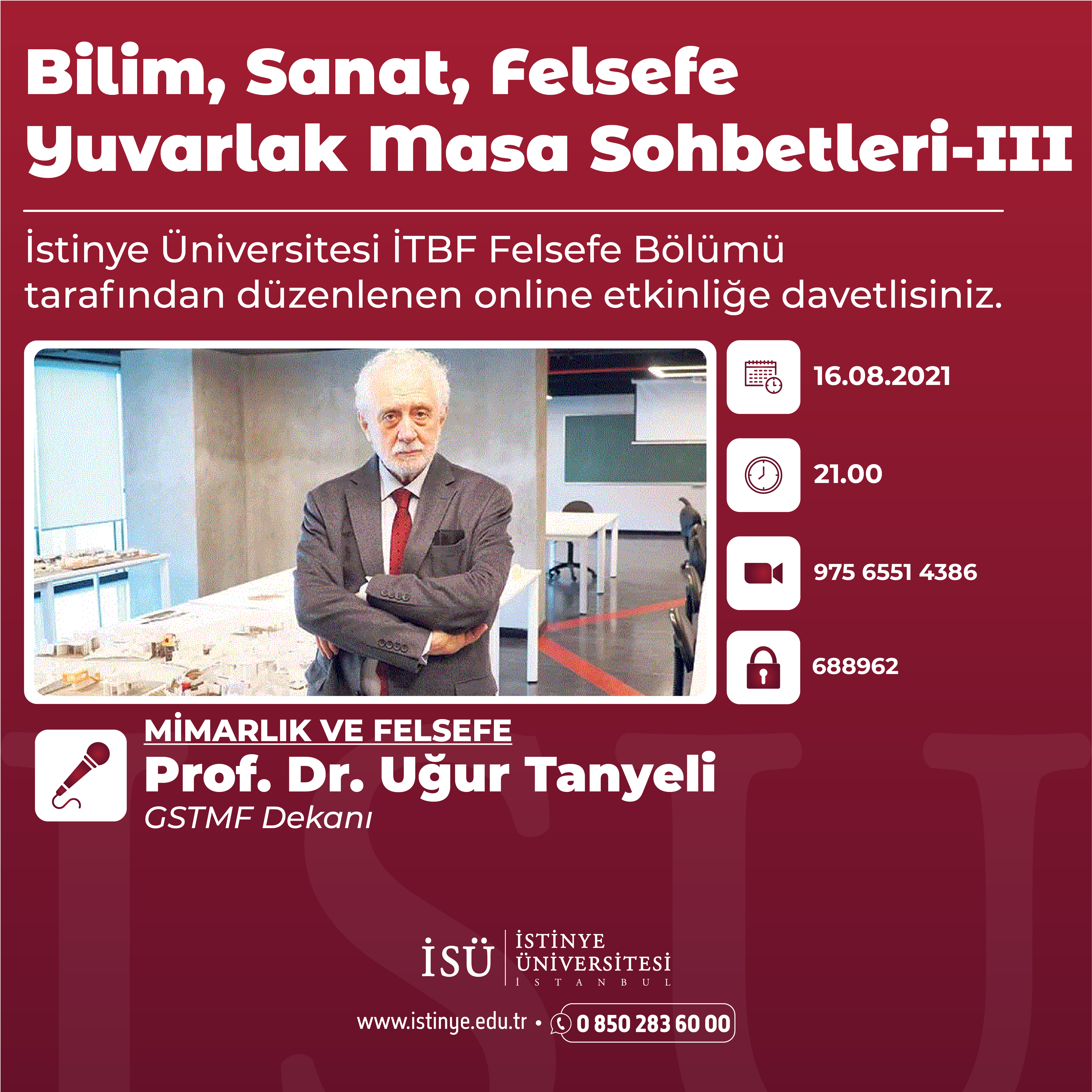 Prof. Dr. Uğur Tanyeli'nin katılacağı "Mimarlık ve Felsefe" konulu online etkinliğe katılmak için: