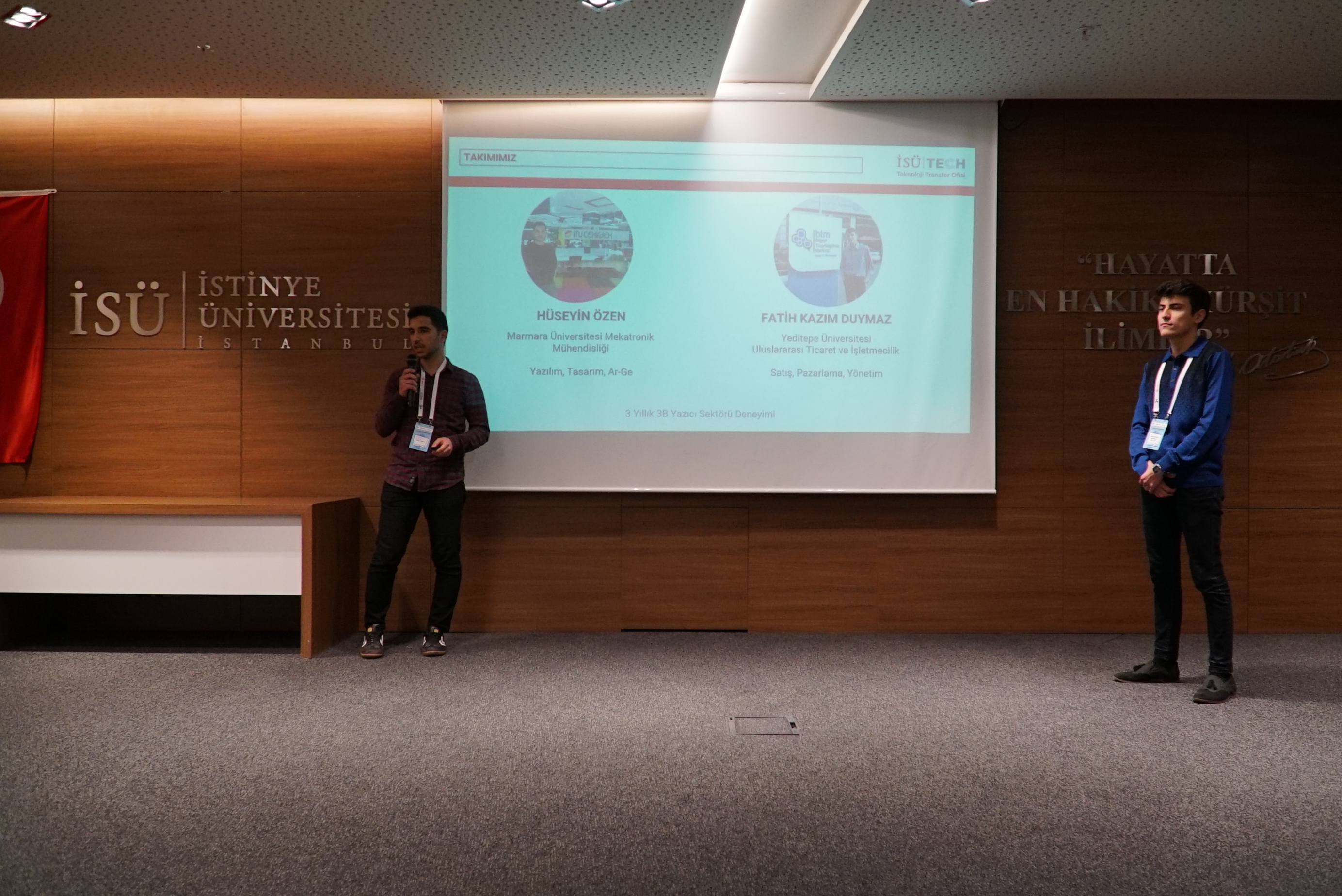 3D yazıcılarda renkli baskıya imkân sağlama temalı Co-Print Projesiyle birinci olan Fatih Kazım DUYMAZ ve ekibi bilgisayar ile ödüllendirildi ve İSÜTECH Kuluçka Merkezinde ofis desteğine hak kazandı. Yenilikçi, kullanımı kolay, az yer kaplayan, organik ve geri dönüştürülebilir şampuan üretimi temalı Mels Toz Şampuanları Projesiyle ikinci olan Melisa ULUCAN, bilgisayar ile ödüllendirildi. Sanal gerçeklik ile yabancı dil öğrenme temalı MakeWords-VR Projesiyle üçüncü olan Furkan KAYA ve ekibi de bilgisayar ödülünün sahibi oldu.