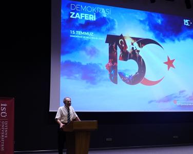15 Temmuz Demokrasi ve Milli Birlik Günü için Rektörlük tarafından düzenlenen panelin açılış konuşmasını Rektör Yardımcımız Prof. Dr. Şafak Hayri Ural ve Ekonomi ve Politika Uygulama ve Araştırma Merkezi ve Sosyal Bilimler Enstitü Müdürü Doç. Dr. Fahri Erenel gerçekleştirdi.