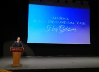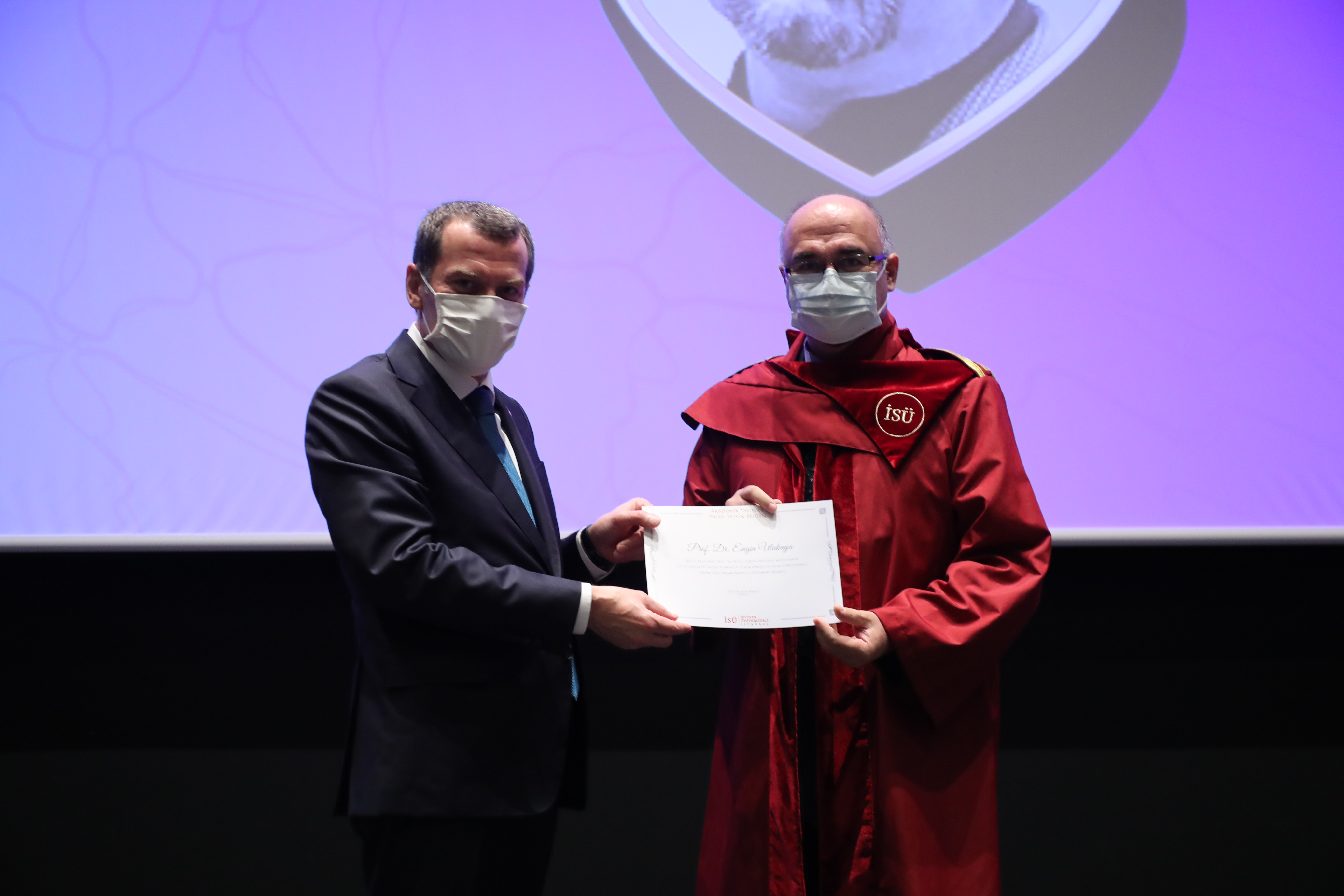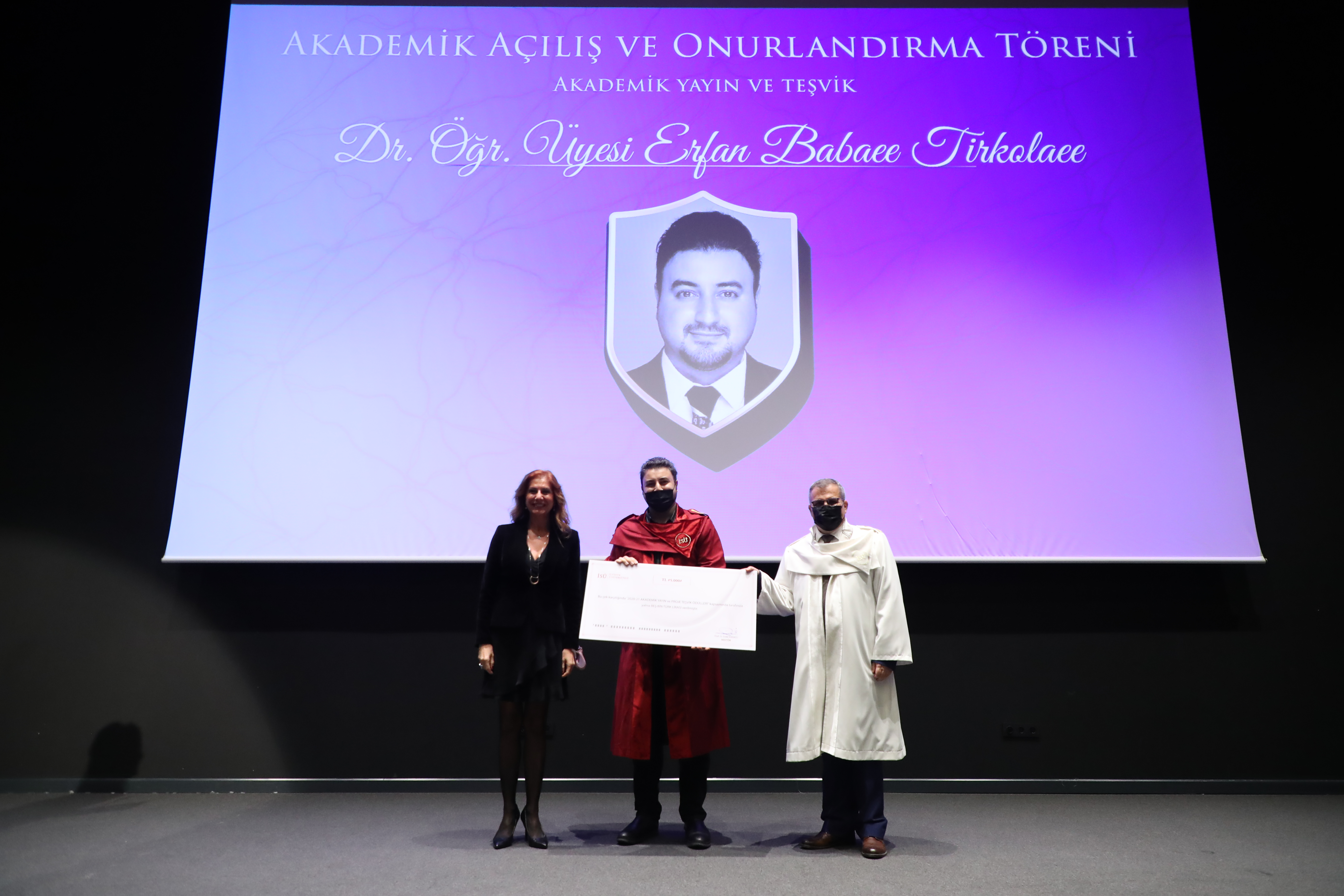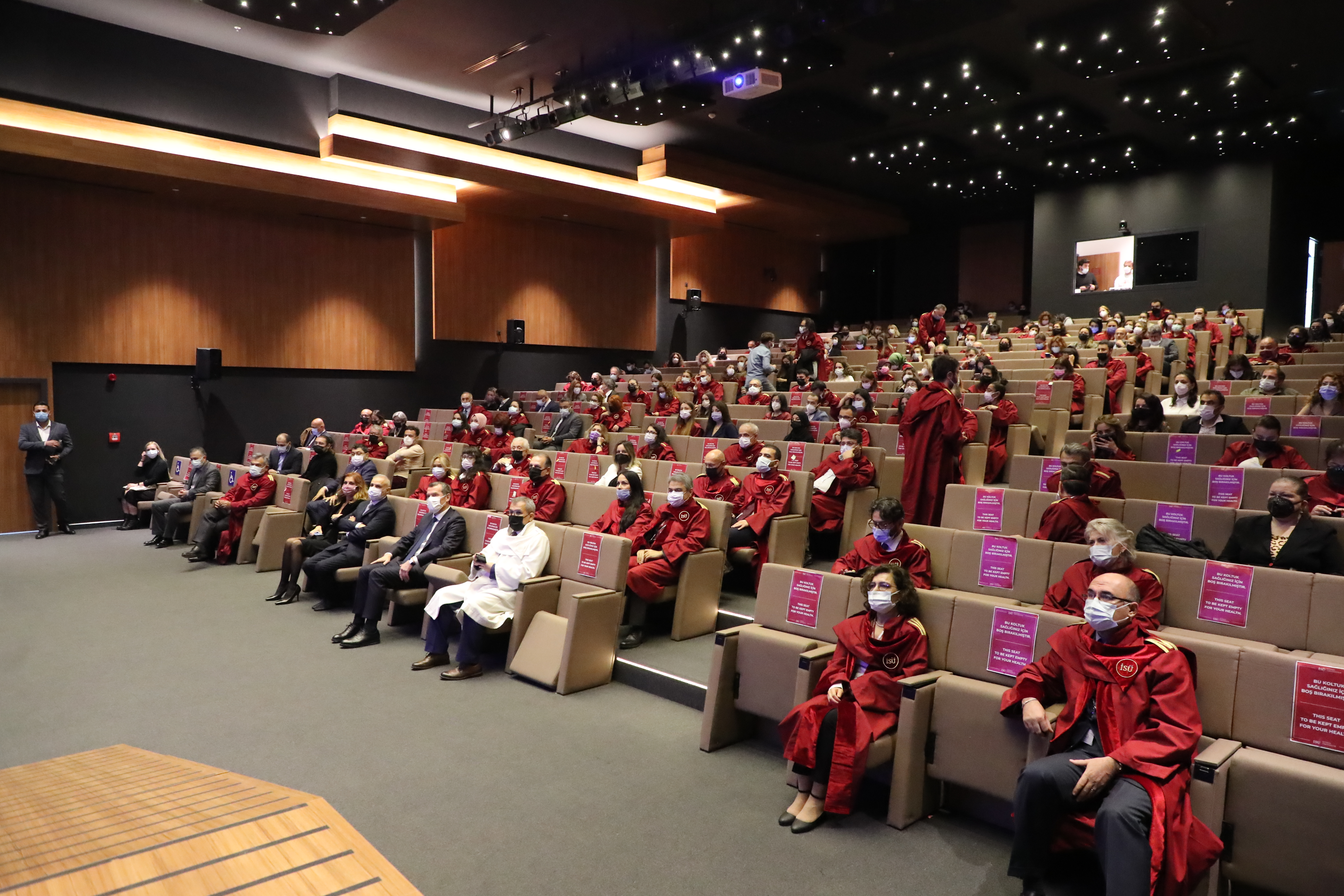 Başarılı akademik çalışmaları neticesinde akademik unvanı yükselen akademisyenlere cübbelerinin giydirilmesi ve 2020 – 2021 akademik yılında gerçekleştirdiği akademik yayın ve proje performansları ile ödüllendirilmeyi hak eden akademisyenlerimin ödüllerinin takdim edilmesi ile devam eden törende, başarıyla geçirdikleri 5 yıllık süreçte emekleriyle İstinye Üniversitesi'nin her geçen gün artan değerine katkı sağlayan akademisyen ve idari personeline plaketleri takdim edildi.