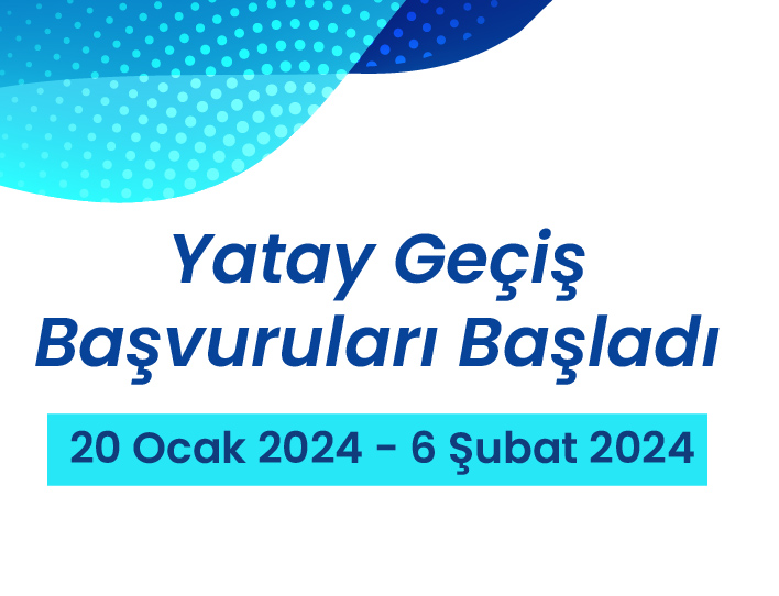 2023-2024 Akademik yılı bahar yarıyılına yatay geçiş başvuruları, 20 Ocak 2024 Cumartesi Saat 10.00'da başlayacak olup, 6 Şubat 2024 Salı saat 17.00'da sona erecektir.