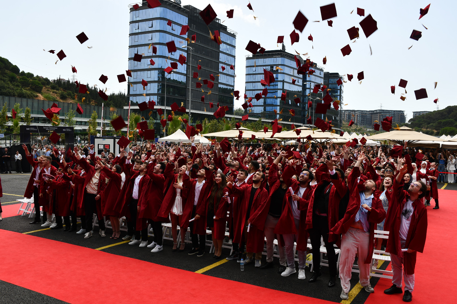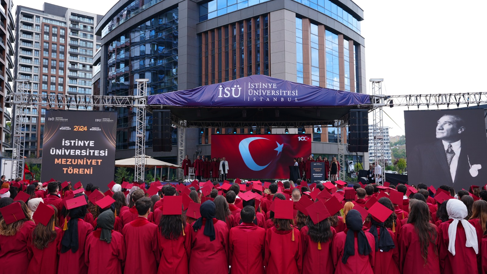 İstinye Üniversitesi Mütevelli Heyet Başkanı Dr. Muharrem Usta, İstinye Üniversitesi Rektörü Prof. Dr. Erkan İbiş, Mütevelli Heyet Üyeleri, akademisyenler ve ailelerin katılımıyla gerçekleşen törende, binlerce mezun kep atmanın sevincini yaşadı.