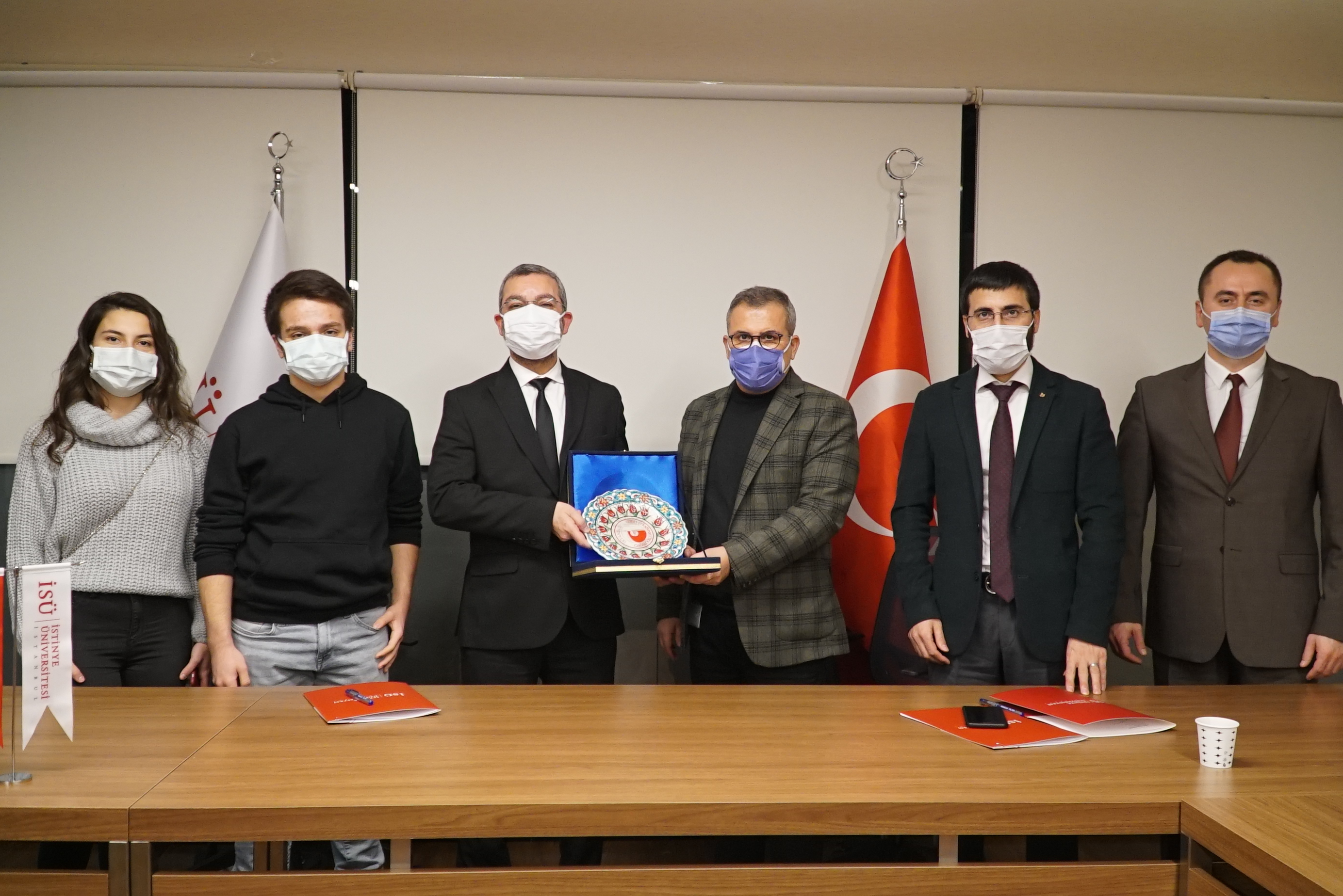 Rektörümüz Prof. Dr. Erdal Karaöz, Cağaloğlu Anadolu Lisesi Müdürü Cafer Çilenti, Cağaloğlu lisesi öğretmenleri Mustafa Ulaş, Mustafa Tunç ve Cağaloğlu Lisesi mezunu olup üniversitemizde lisans eğitimlerini sürdüren öğrencilerimiz Şevval Poyraz ve Serdar Efe Aydoğan İstinye Üniversitesi Topkapı kampüsünde bir araya gelerek ileride gerçekleştirilecek çalışmaları ve projeleri değerlendirdi.