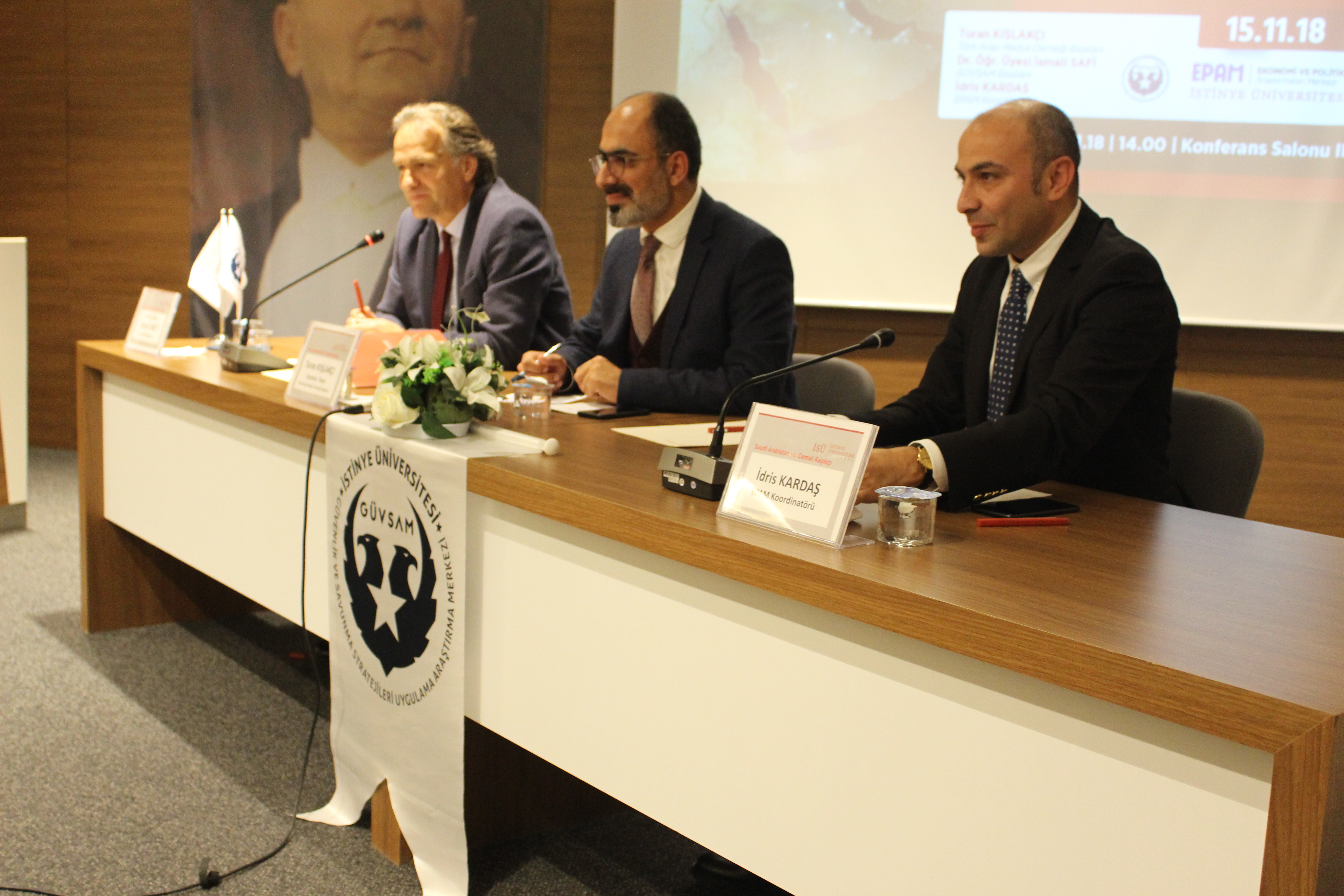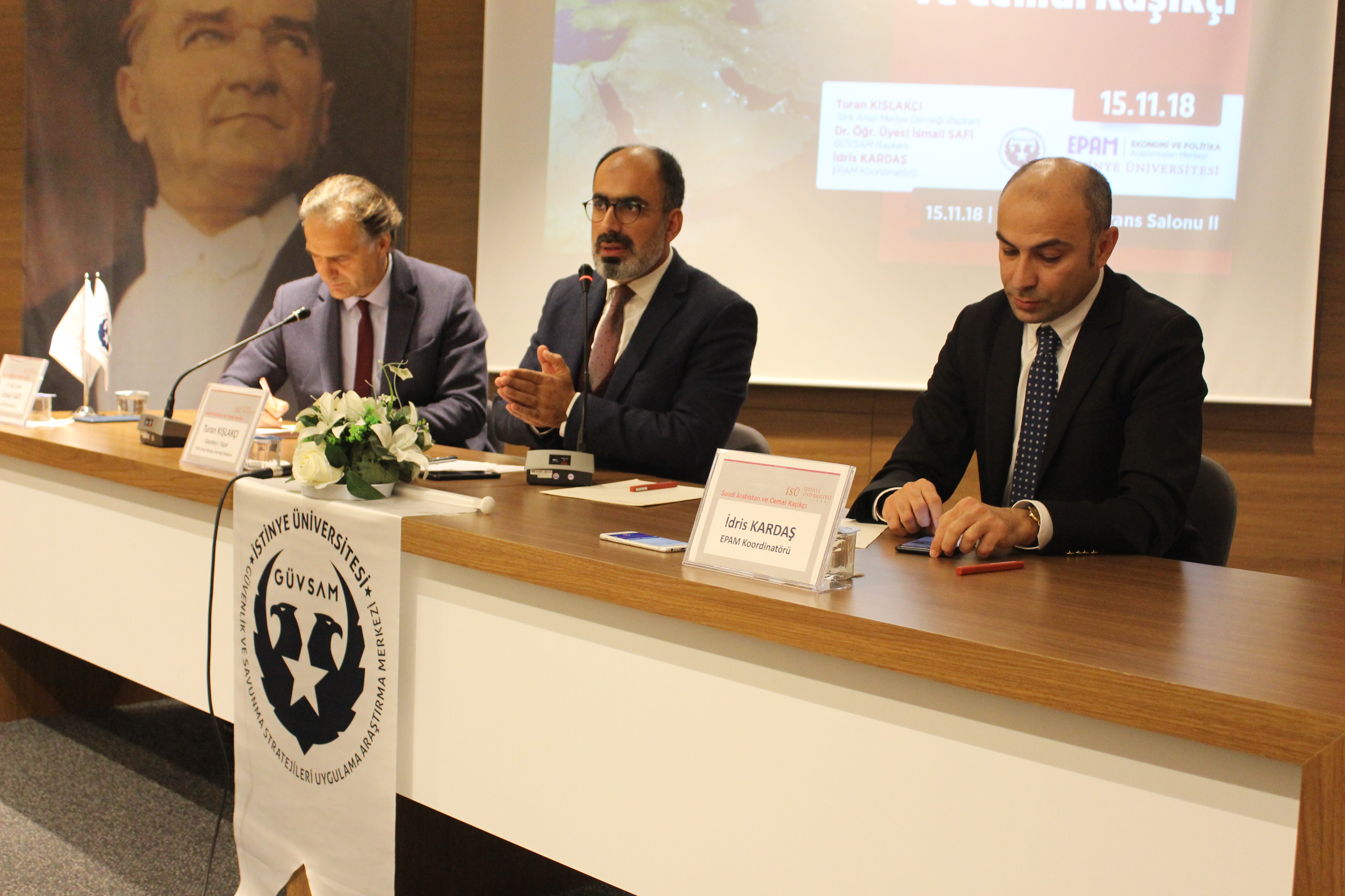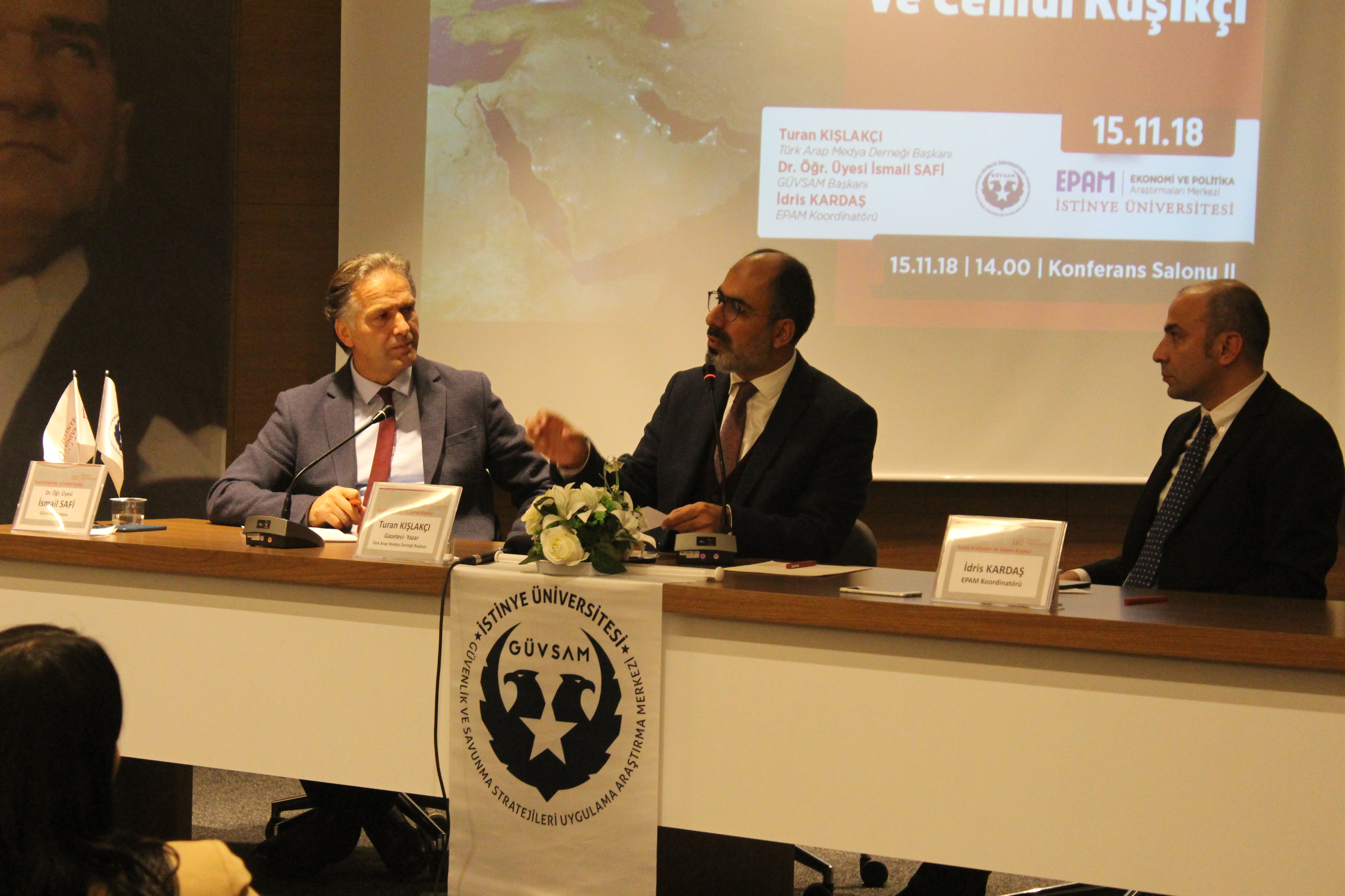 GÜVSAM (İstinye Üniversitesi Güvenlik ve Savunma Stratejileri Uygulama ve Araştırma Merkezi) ve EPAM (İstinye Üniversitesi Ekonomi ve Politika Araştırma Merkezi) tarafından, Cemal KAŞIKÇI’nın yakın arkadaşı, Türk Arap Medya Derneği Başkanı ve gazeteci Turan KIŞLAKÇI’nın katılmıyla düzenlenen ‘’Suudi Arabistan ve Cemal Kaşıkçı’’ paneli; 15 Kasım 2018 Perşembe günü İstinye Üniversitesi Topkapı Kampüsü’nde gerçekleşti.