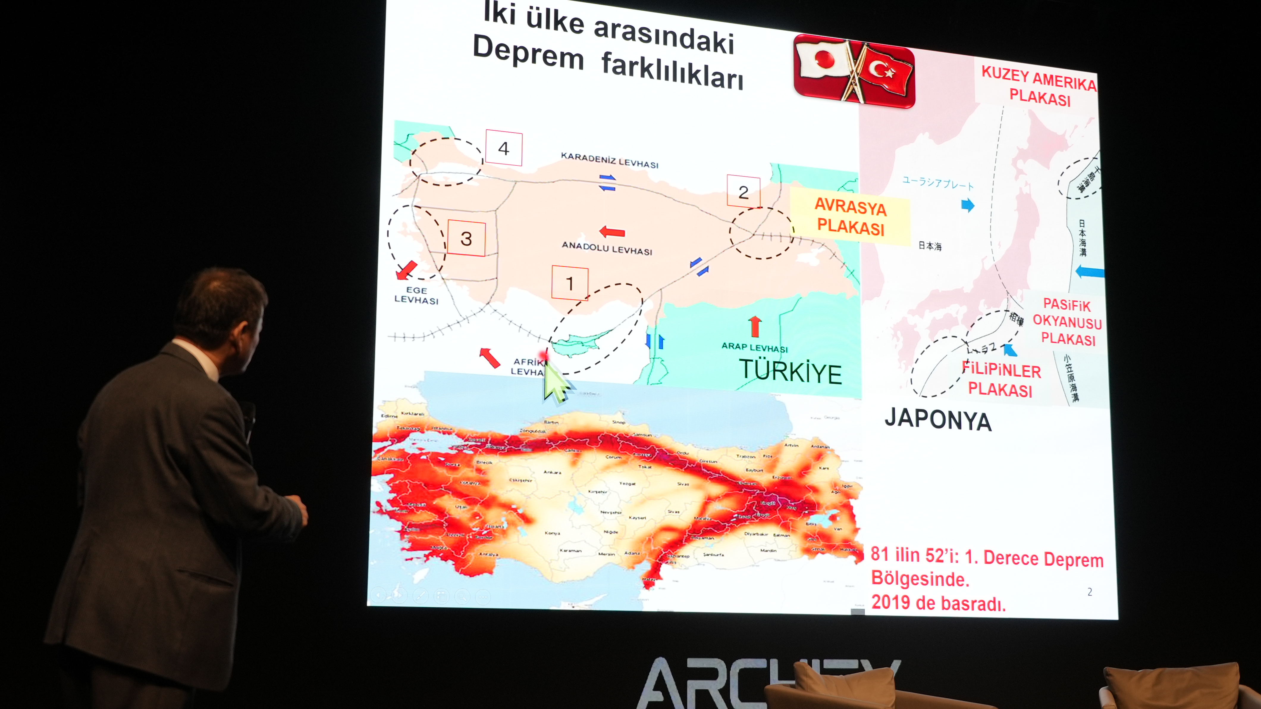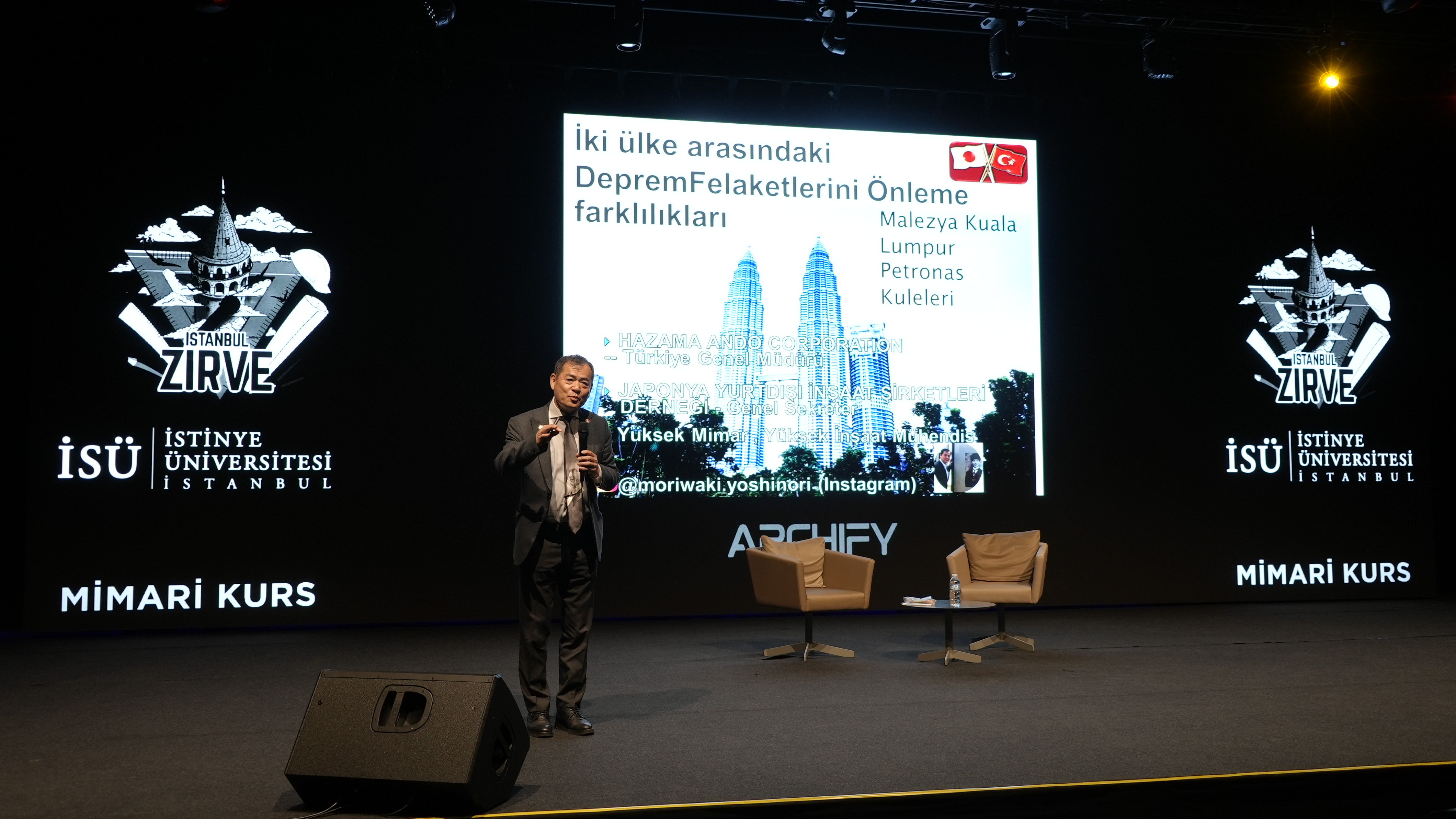 Zirveye konuşmacı olarak katılan yüksek mimar ve yüksek inşaat mühendisi Yoshinori Moriwaki ise Türkiye'nin depremlere nasıl hazırlanması gerektiğini aktardı. Yüksek mimar ve yüksek inşaat mühendisi Yoshinori Moriwaki, "23 Nisan'da Silivri açıklarında yaşanan 6.2'lik deprem ile biraz enerji boşaldı. Ancak henüz Adalar ve Çınarcık bölgesindeki fayda kırılma olmadı. O bölgede enerji henüz duruyor. Ne zaman olacağı bilinmez ancak bu bölgede de deprem olabilir" dedi.